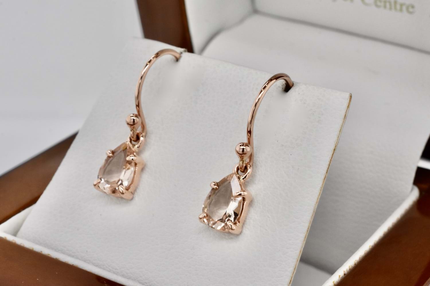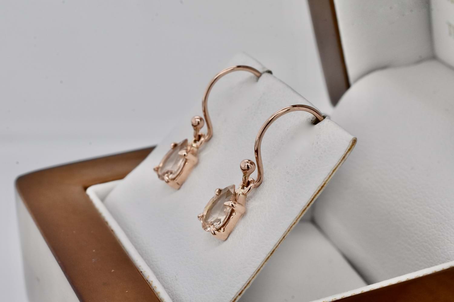 SOLD Handmade 9ct Rose Gold Pearshape Morganite Earrings