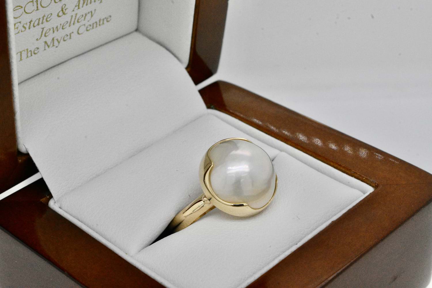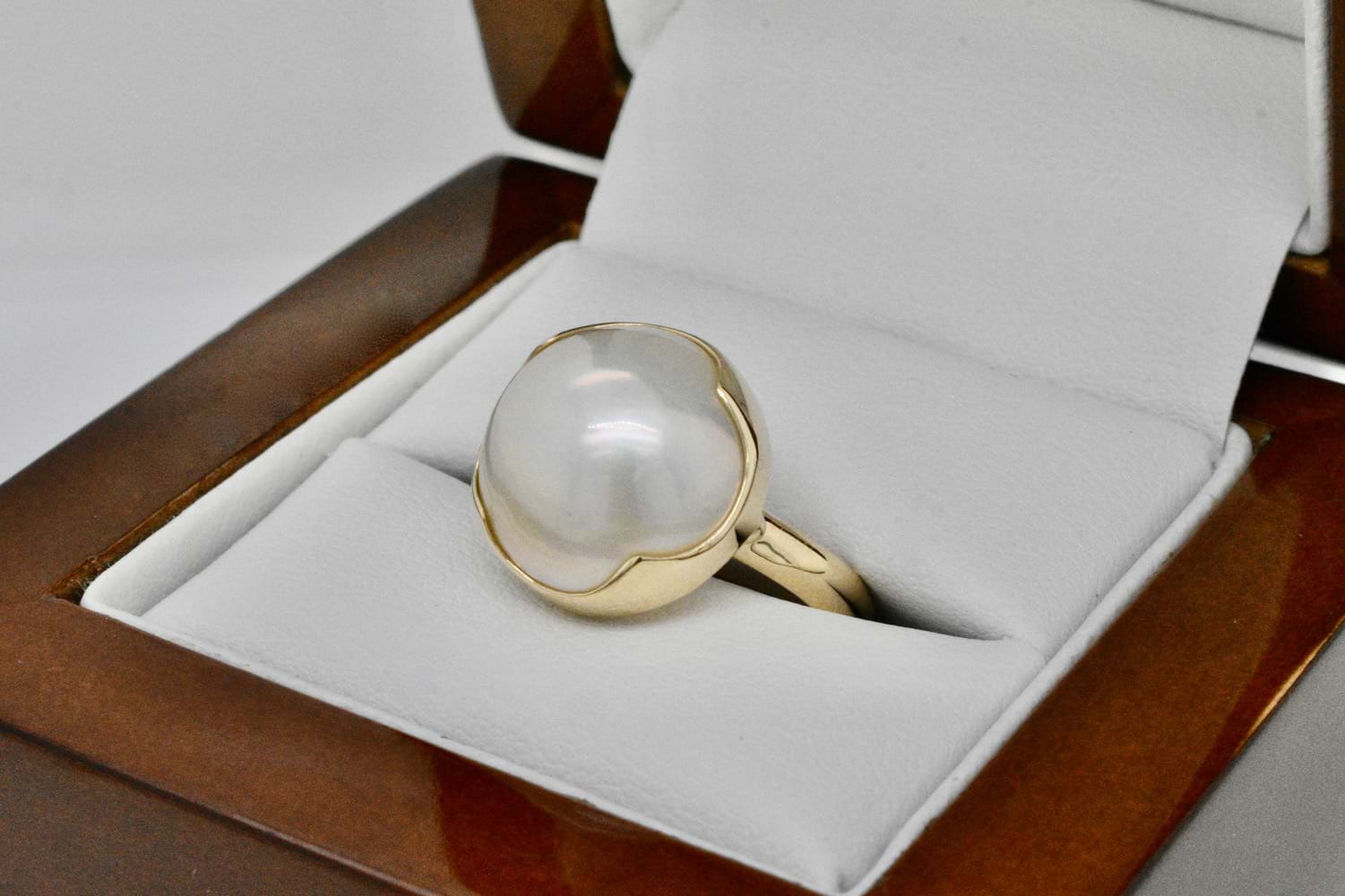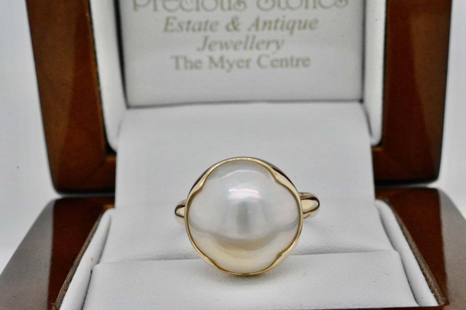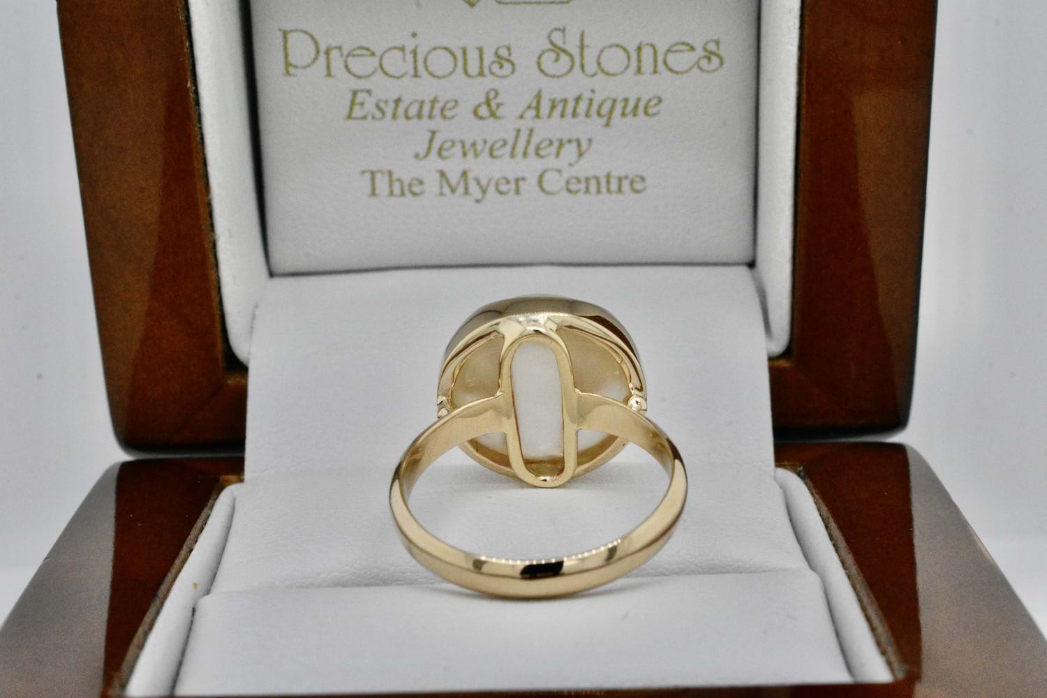SOLD Handmade 9ct Yellow Gold 14mm White Mabe Pearl Ring