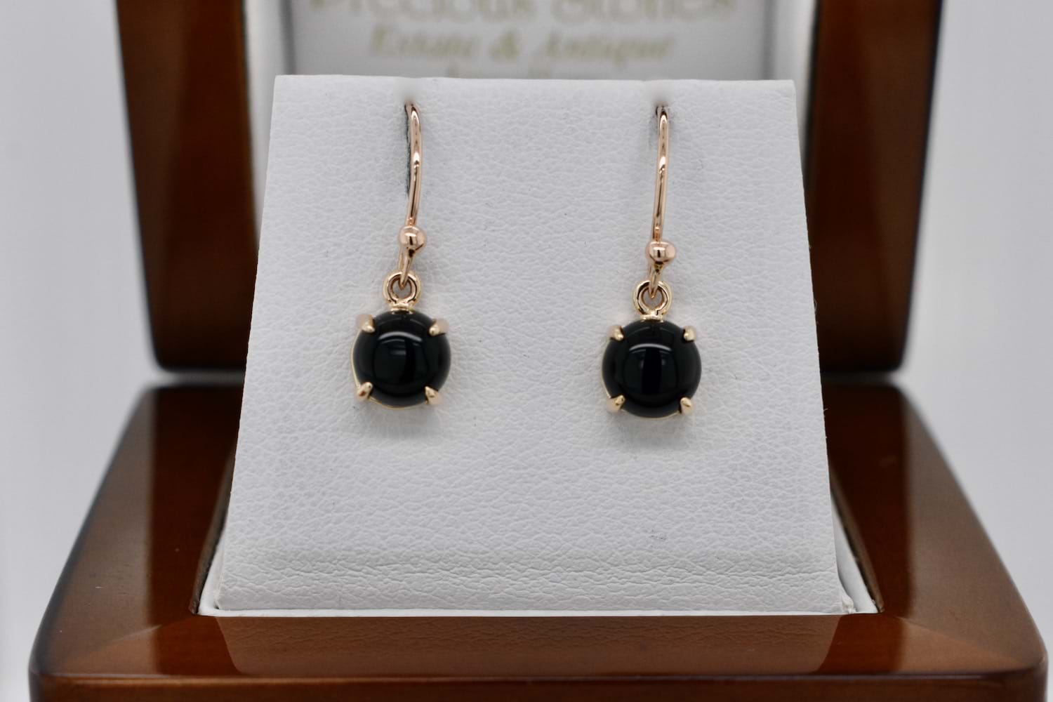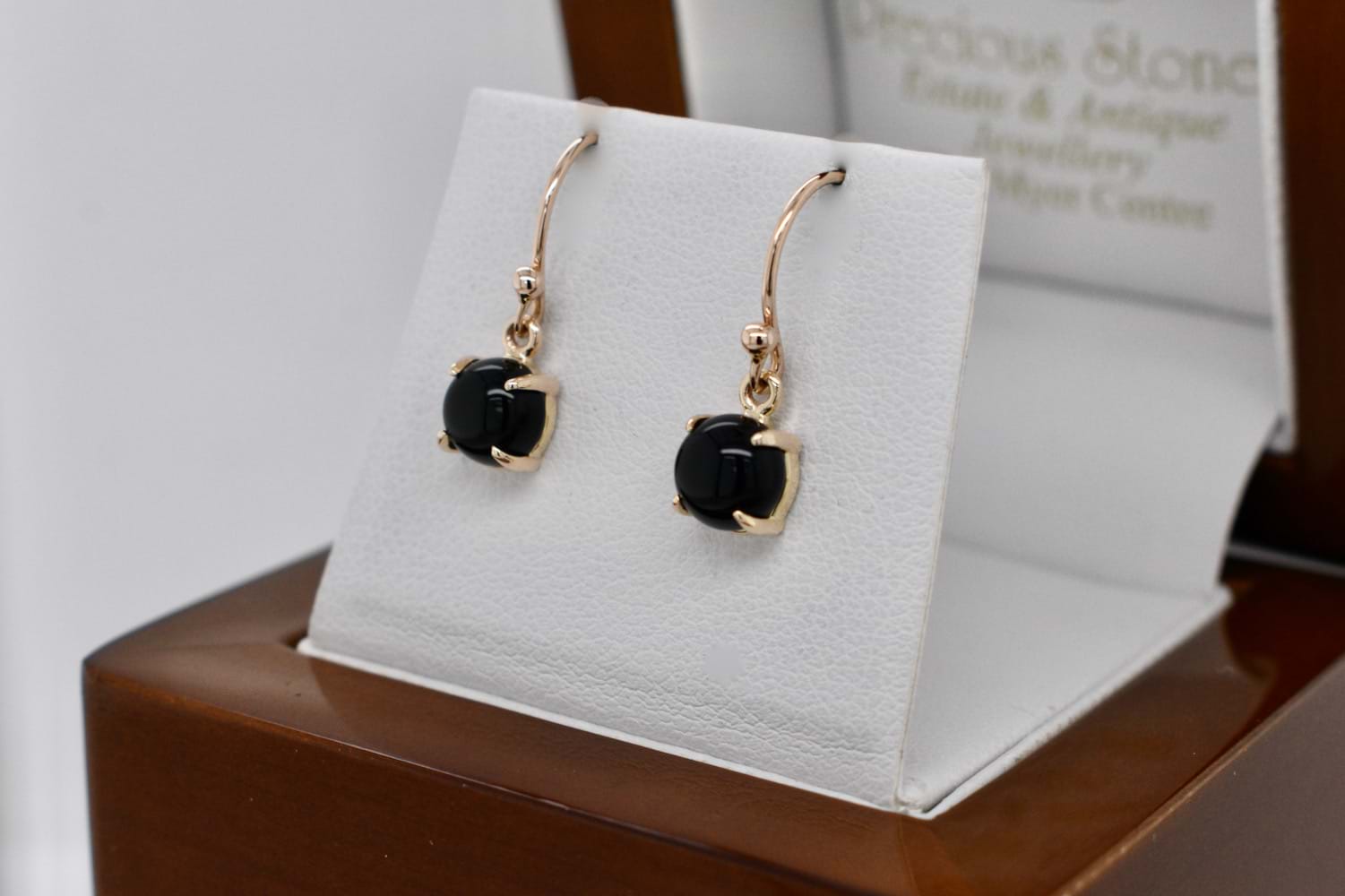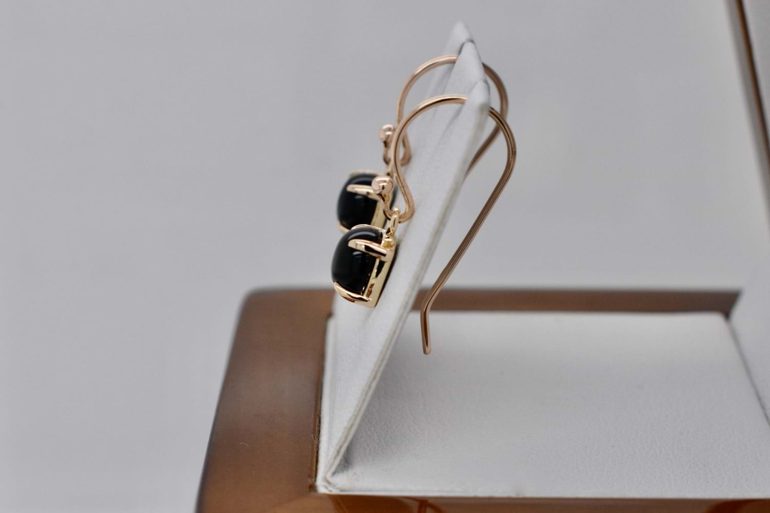 SOLD Handmade 9ct Yellow Gold 6mm Onyx Drop Earrings