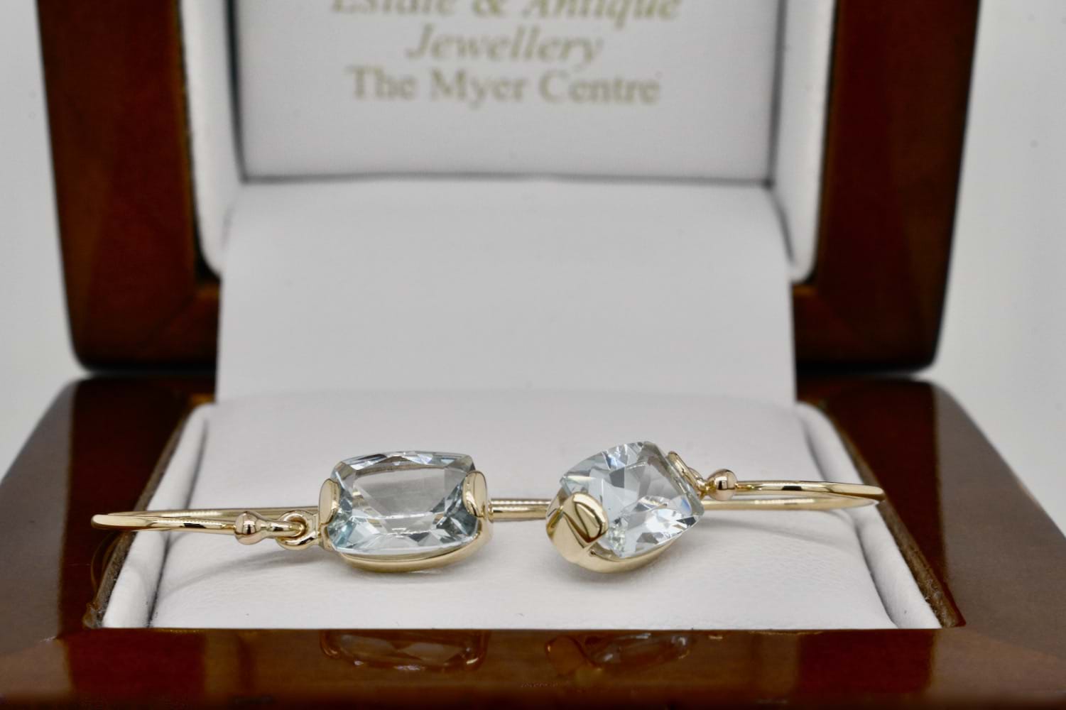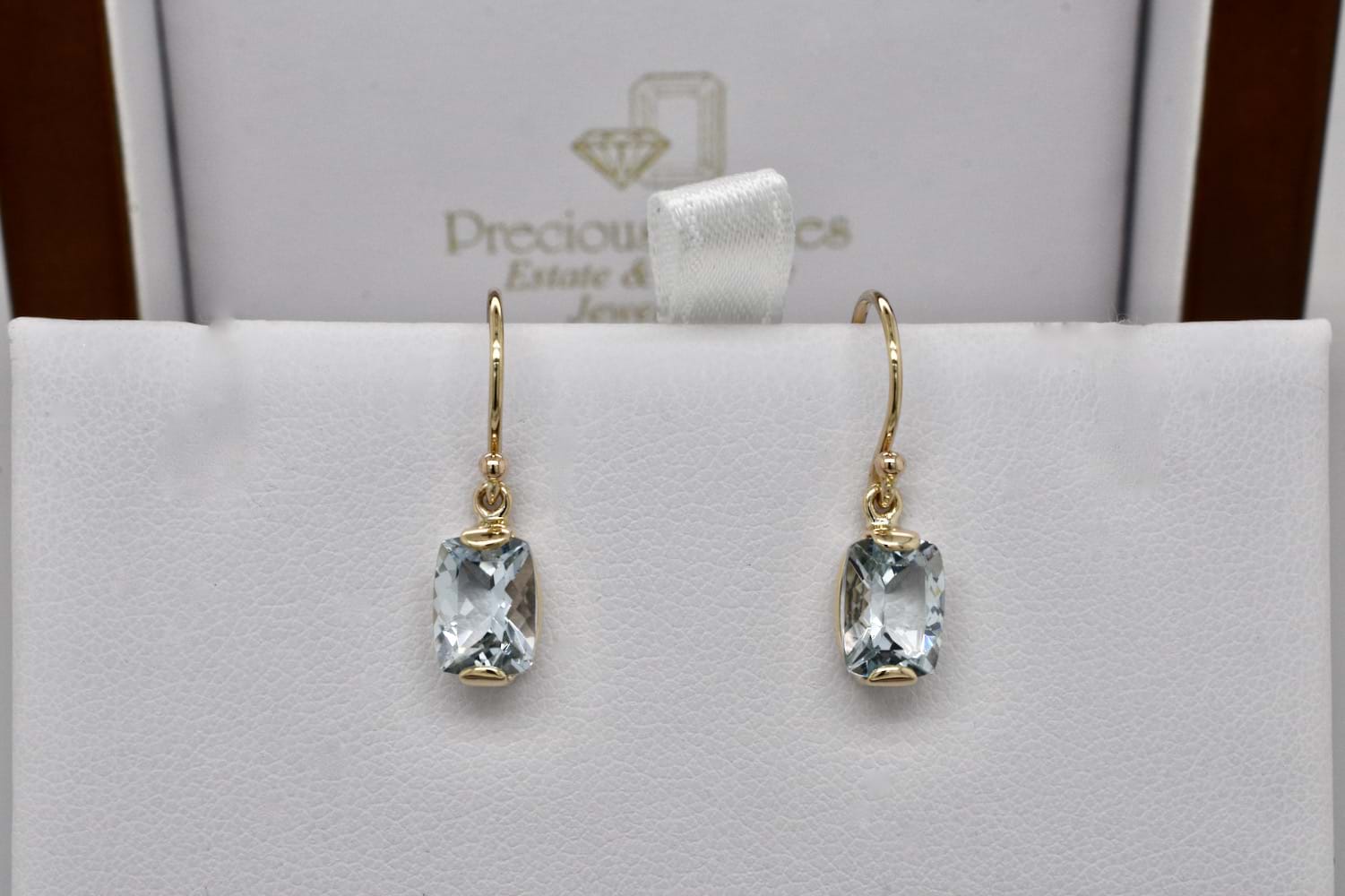 SOLD Handmade 9ct Yellow Gold Cushion Cut Aquamarine Earrings