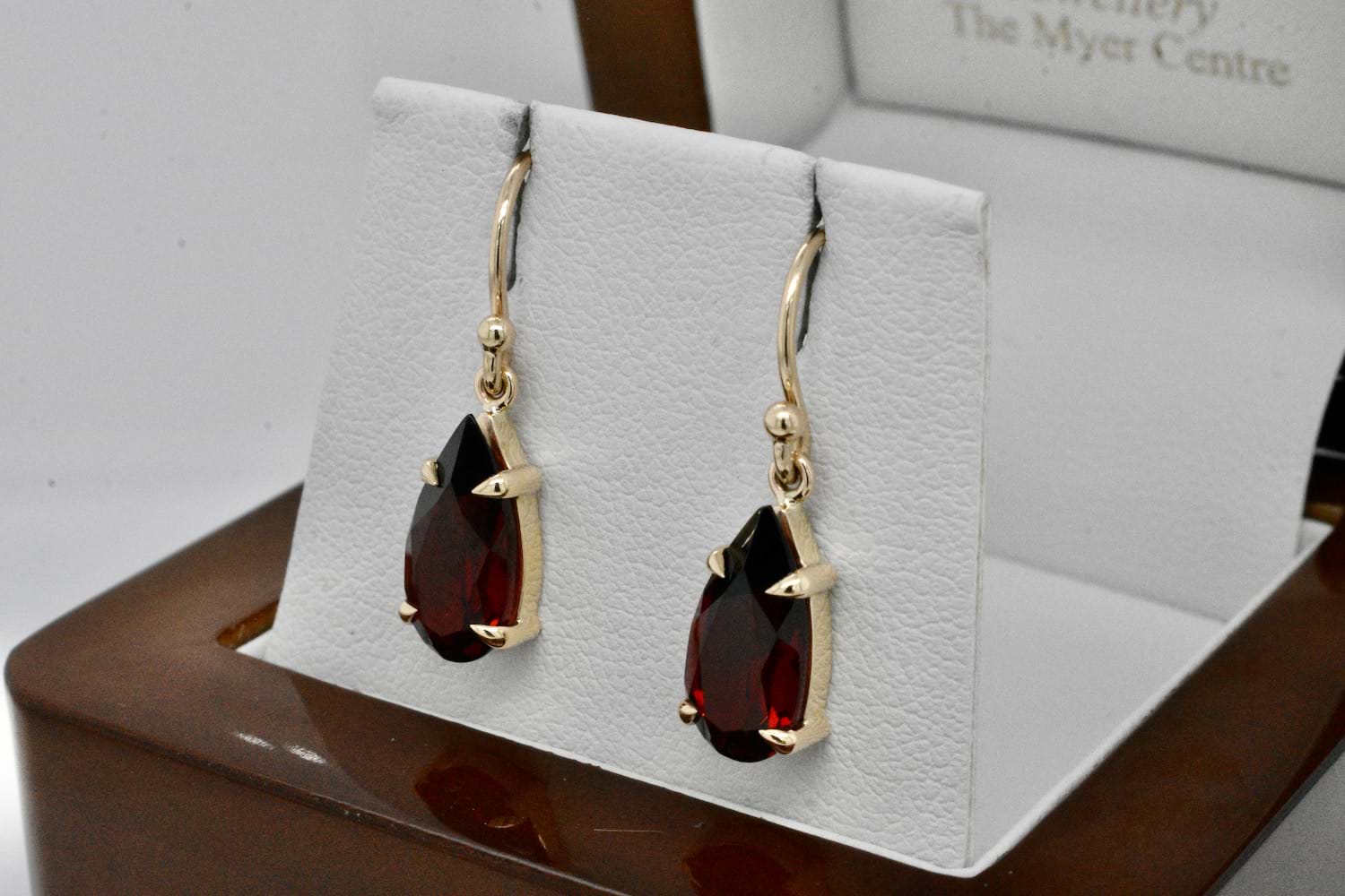 SOLD Handmade 9ct Yellow Gold Pearshape Garnet Drops