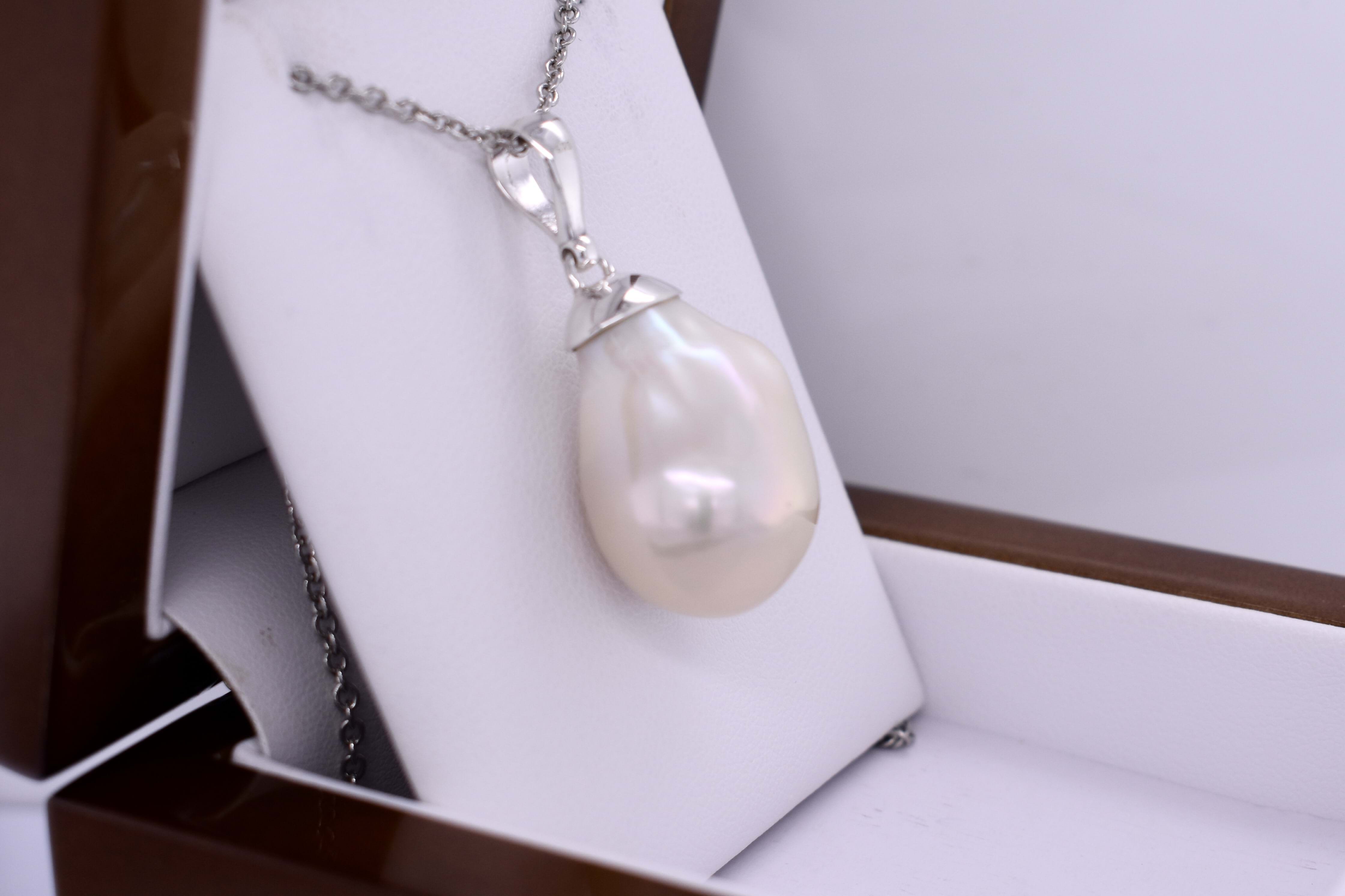 This stylish pendant is handmade and features a baroque freshwater pearl measuring approx. 24.4x17mm, set with a sterling silver cap and finished with a plain bale. Chains available for separate purchase.
