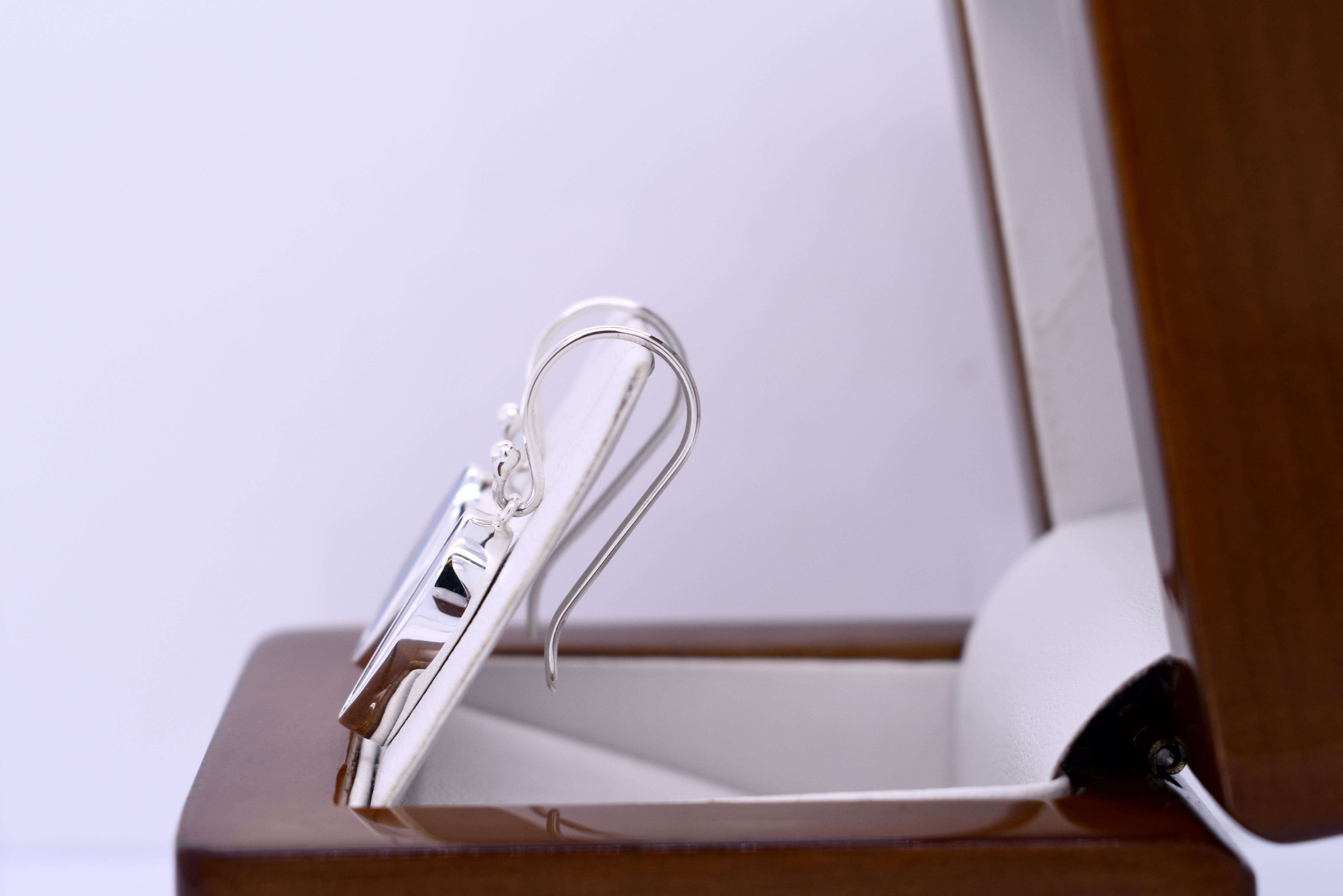 Showcasing vibrant freeform Coober Pedy opals measuring approximately 15.9x7.2mm, these earrings are bezel set in handcrafted sterling silver settings. The opal doublets, backed with boulder opal, display bright flashes of green, orange, and purple across the surface. Finished with classic sterling silver shepherd hook fittings for comfortable wear.