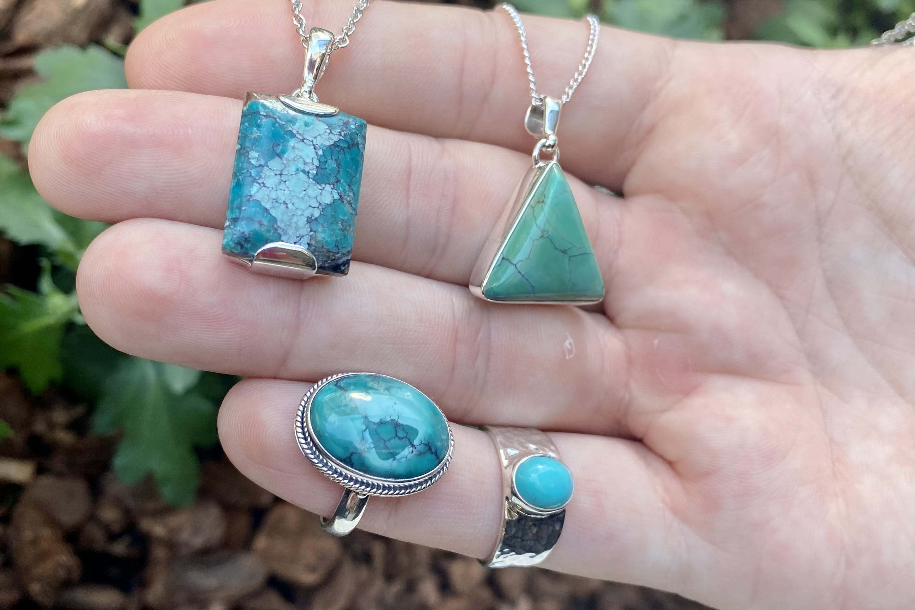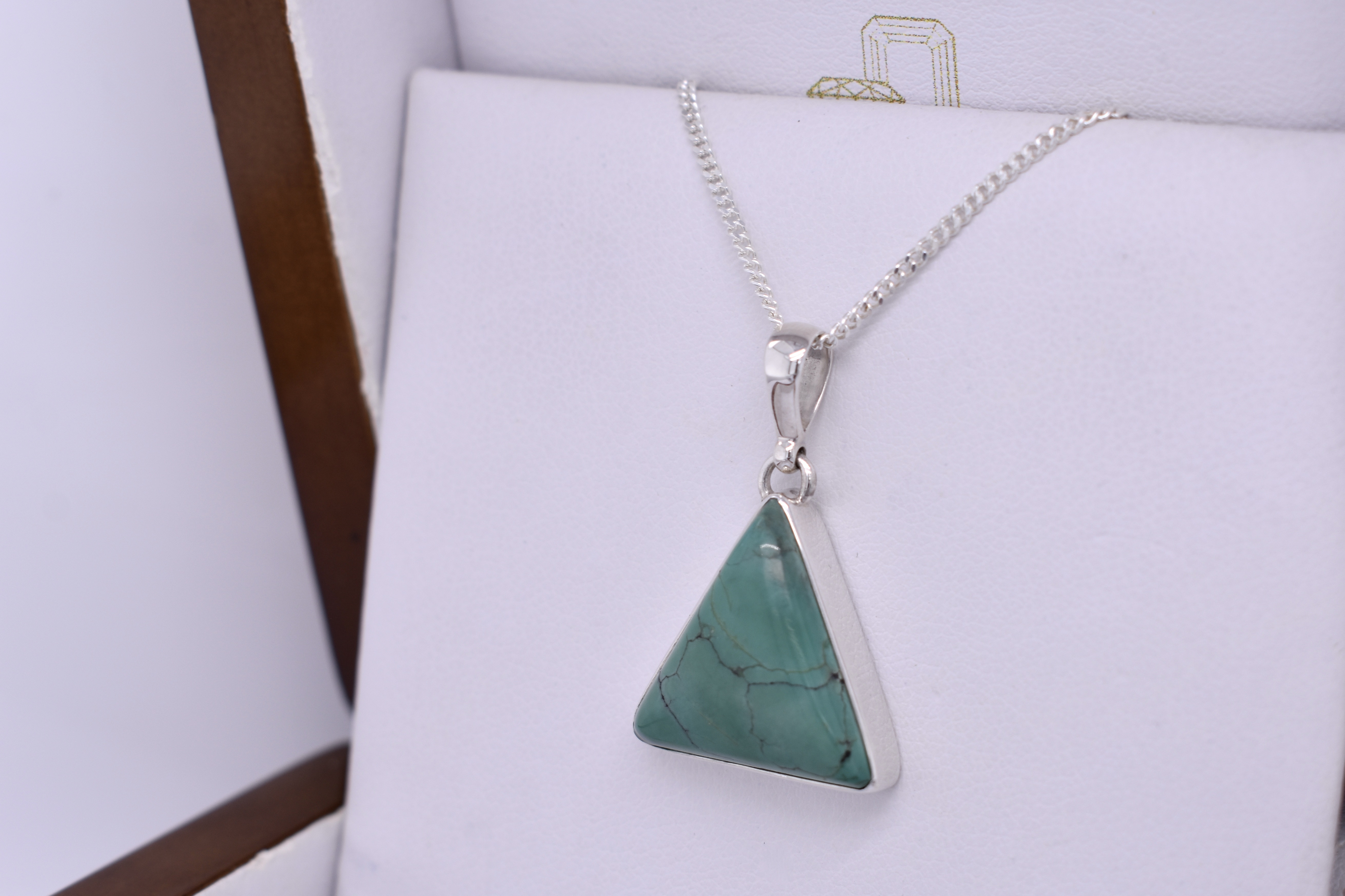One of a kind Tibetan trilliant turquoise pendant, measuring 19.7x20.0mm, bezel set in a handmade sterling silver setting with a plain pendant bale. Chains available for separate purchase.