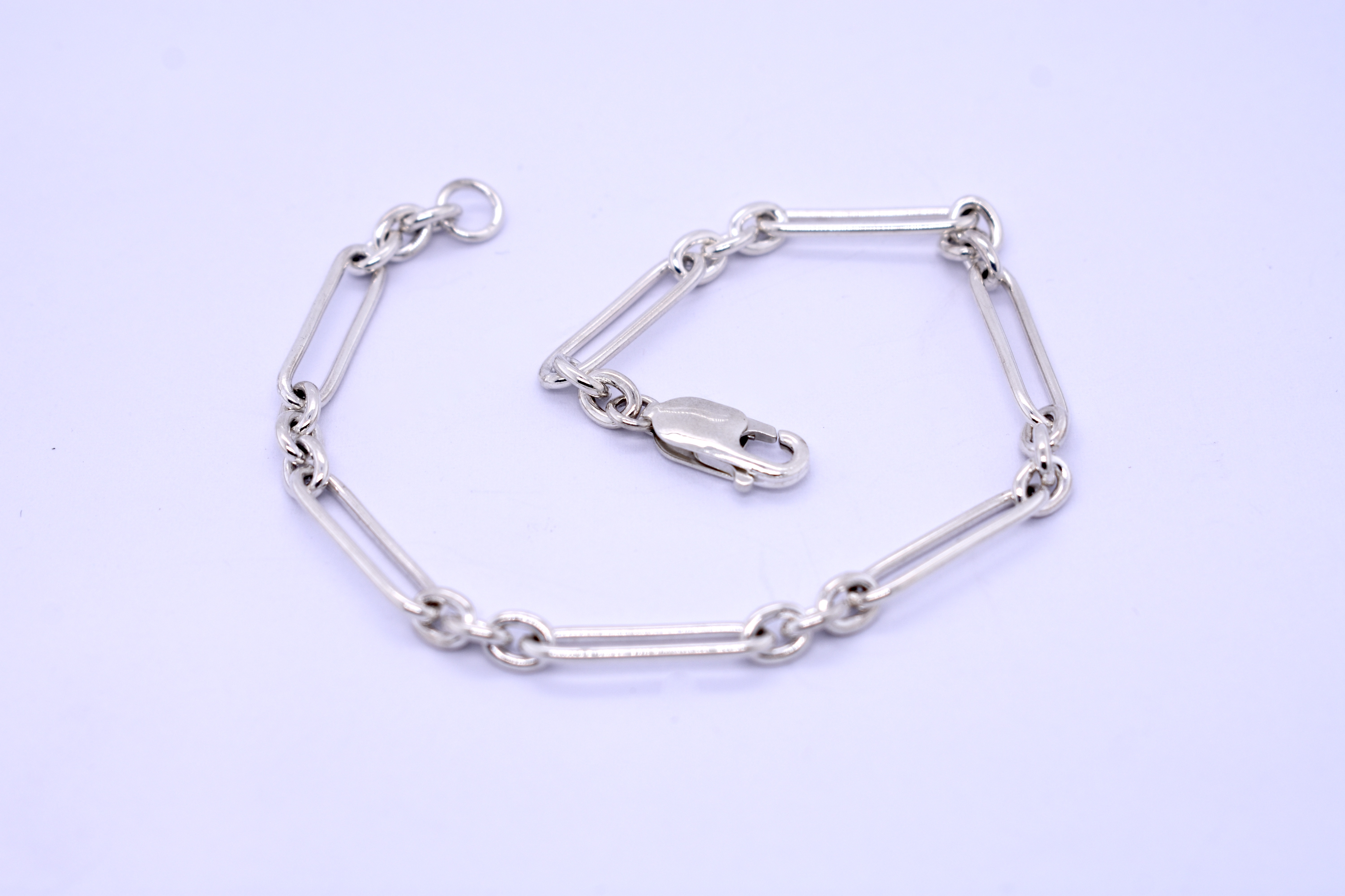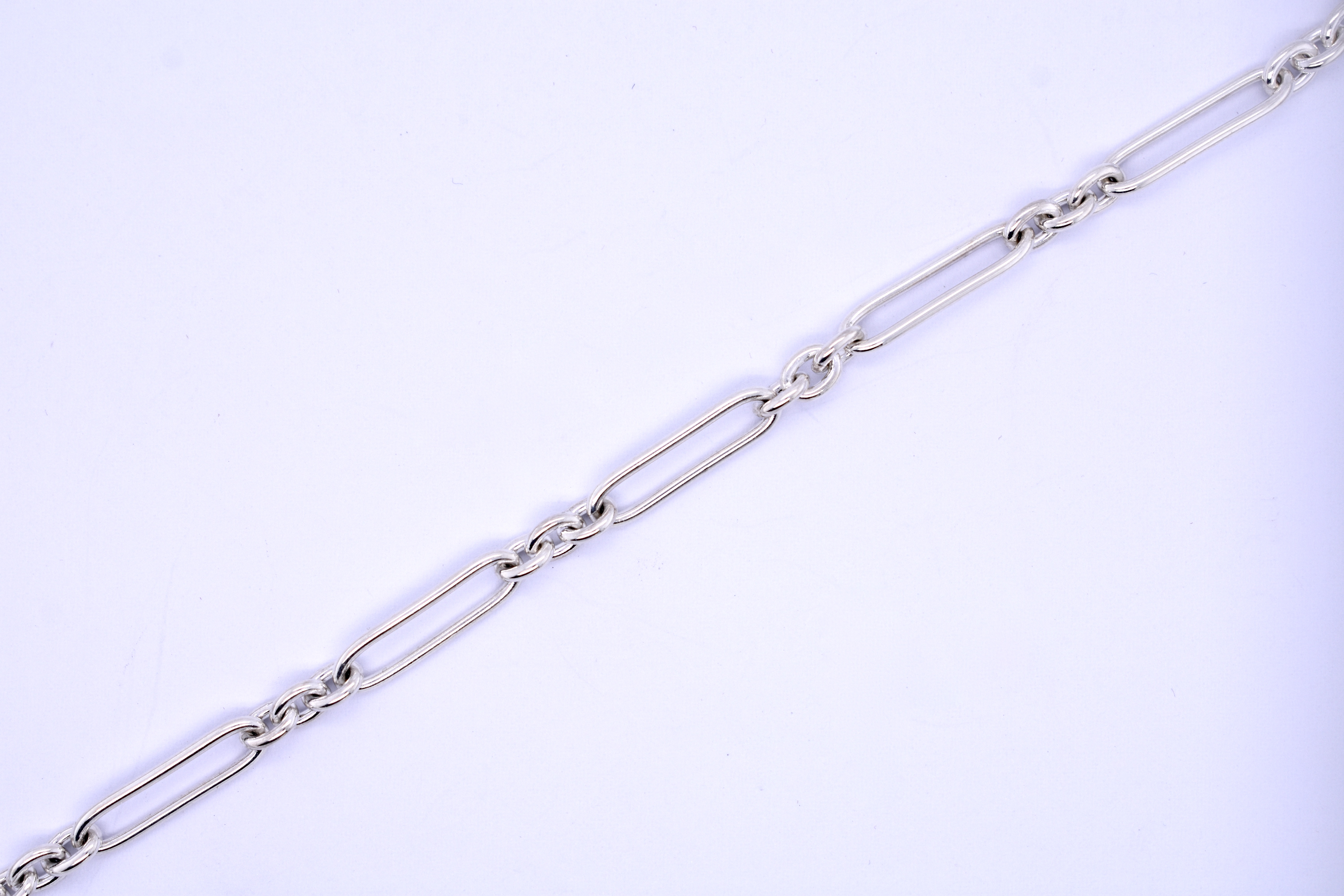 The perfect sterling silver bracelet, hand crafted by our goldsmith in this pretty 3/1 (3 short, 1 long) BB cable link with a parrot clasp. Measures 20.5cm long and weighs 7.25 grams. Complete the set with the matching chain: 20390914.
