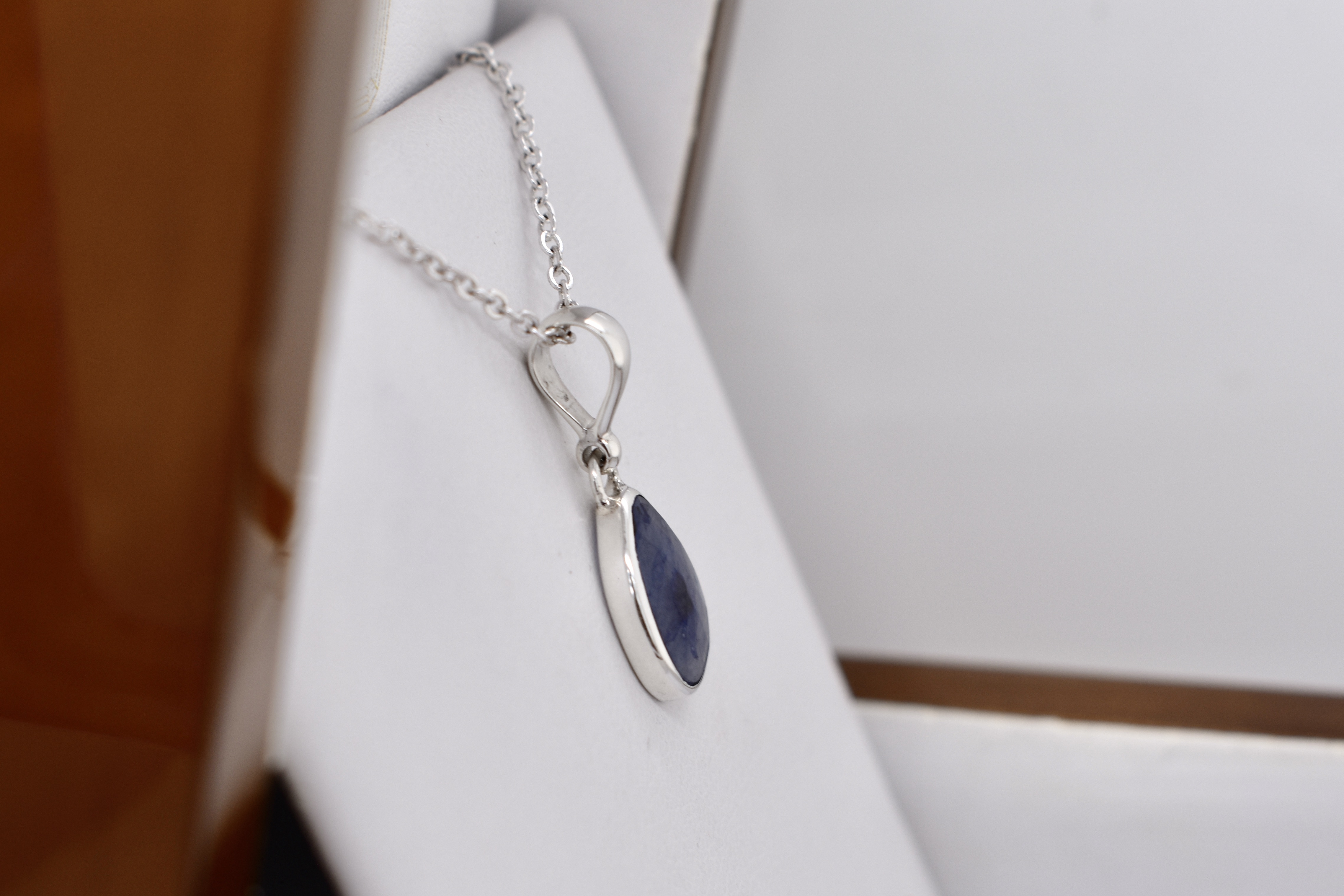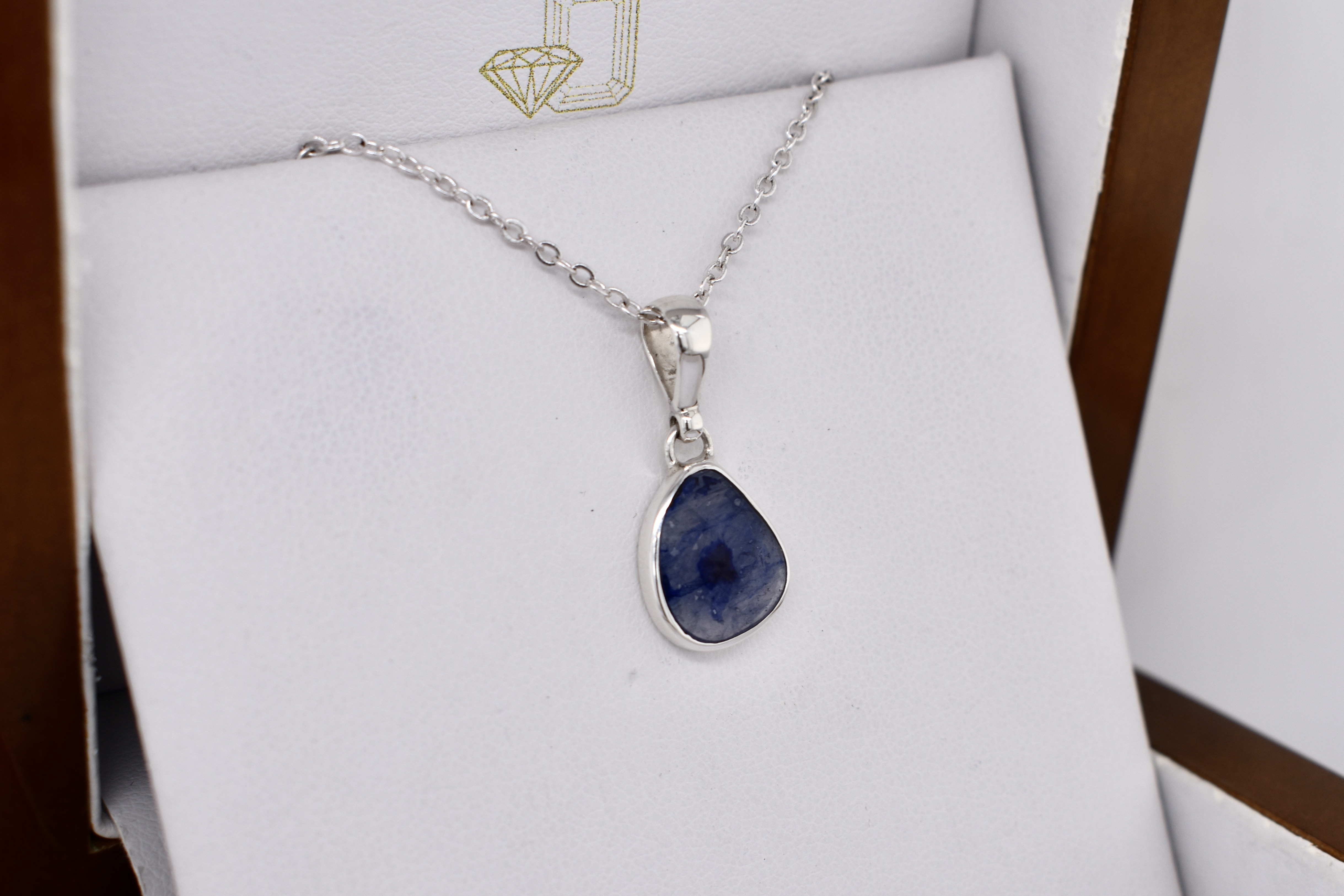 Timeless handmade sterling silver pendant, bezel set, featuring a freeform shaped 13.0x11.0mm rose cut sapphire, with a plain pendant bale. Chains are available for separate purchase.