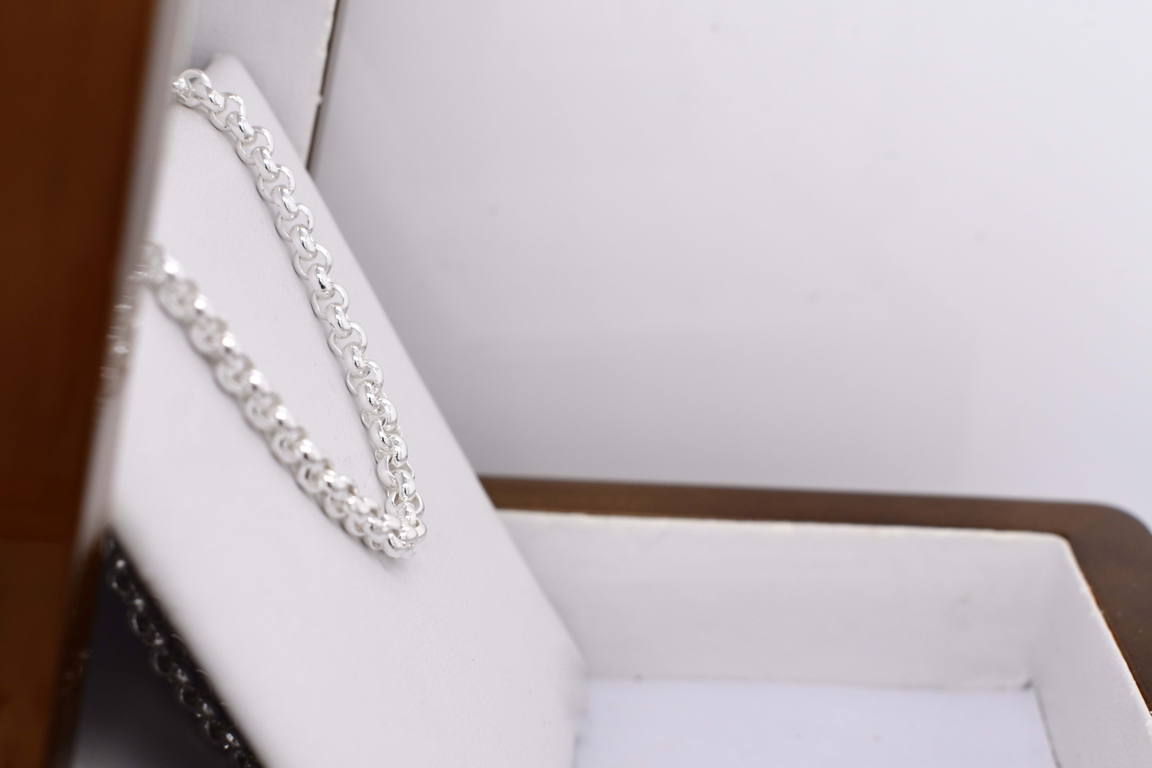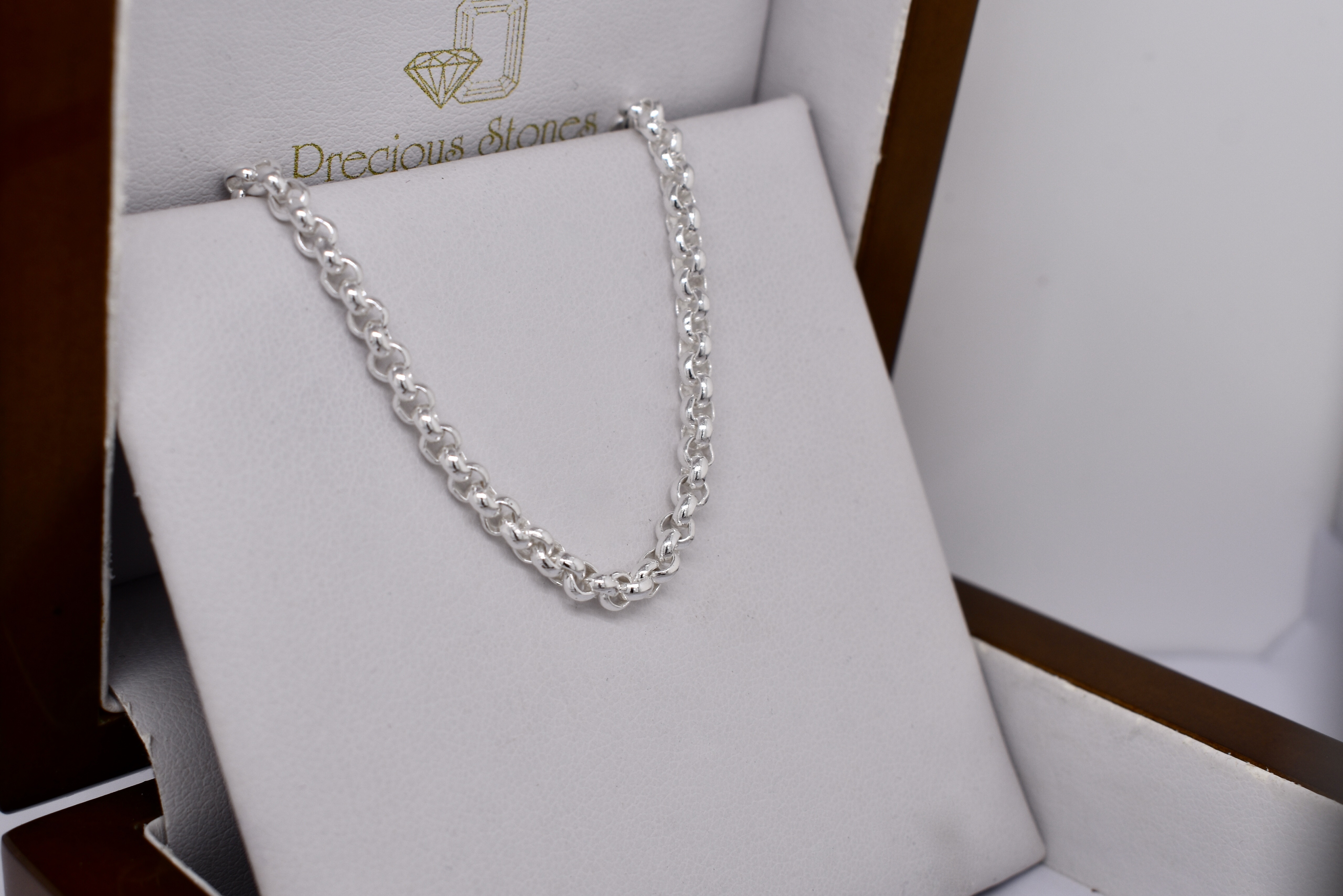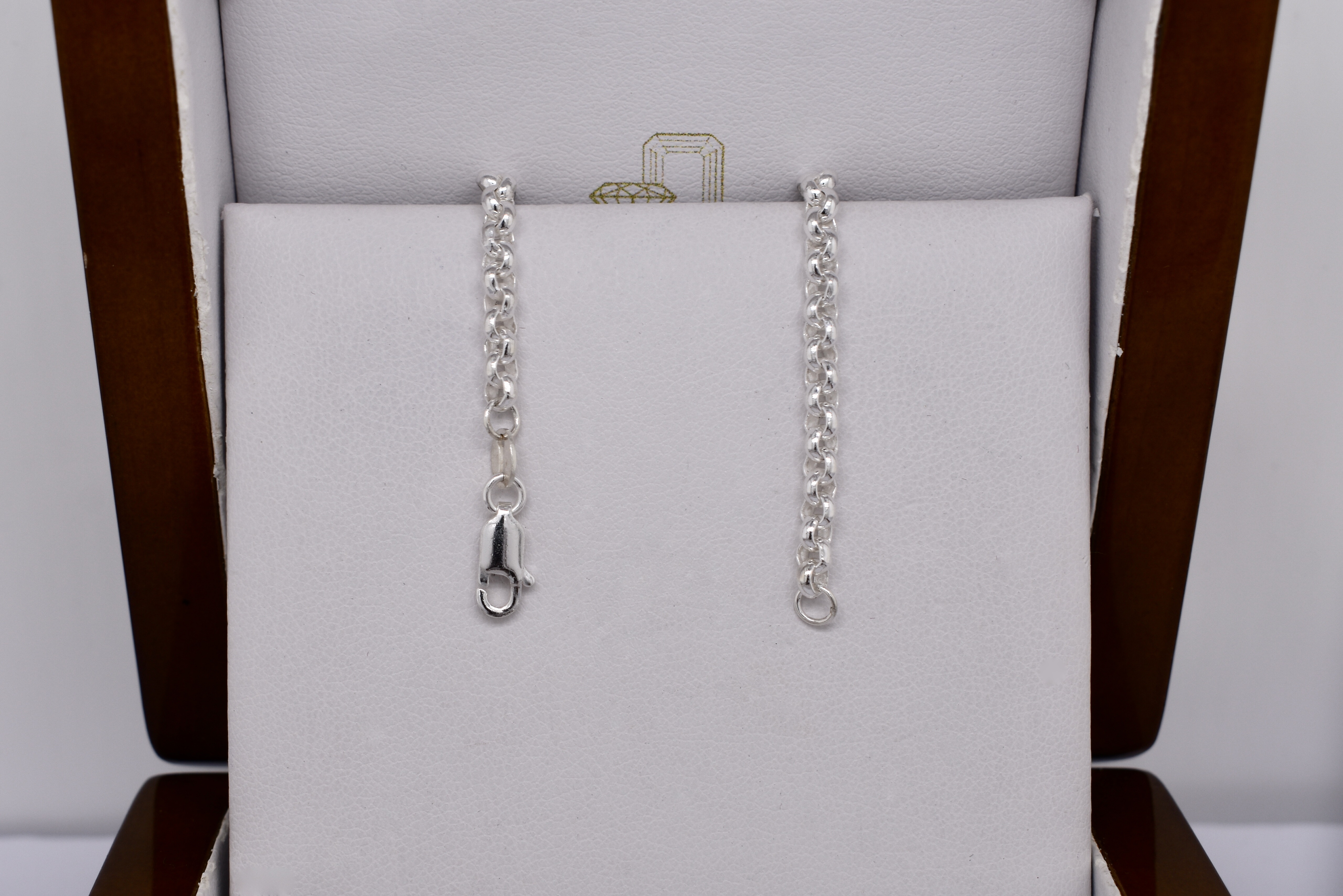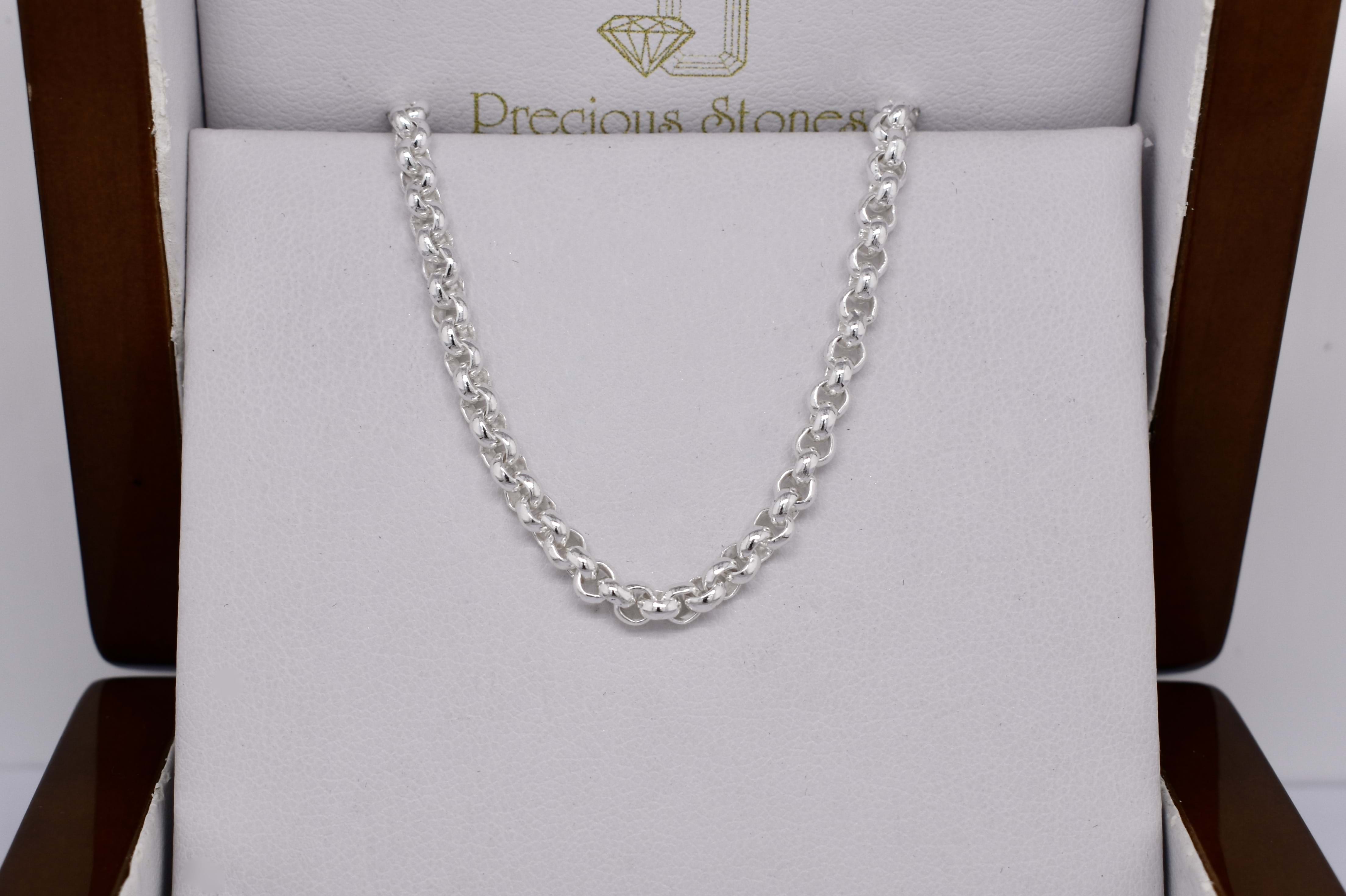 A simple round belcher link chain, crafted in sterling silver, measuring 60cm long. Complete with a parrot clasp. Chain weighs 21.8 grams.
