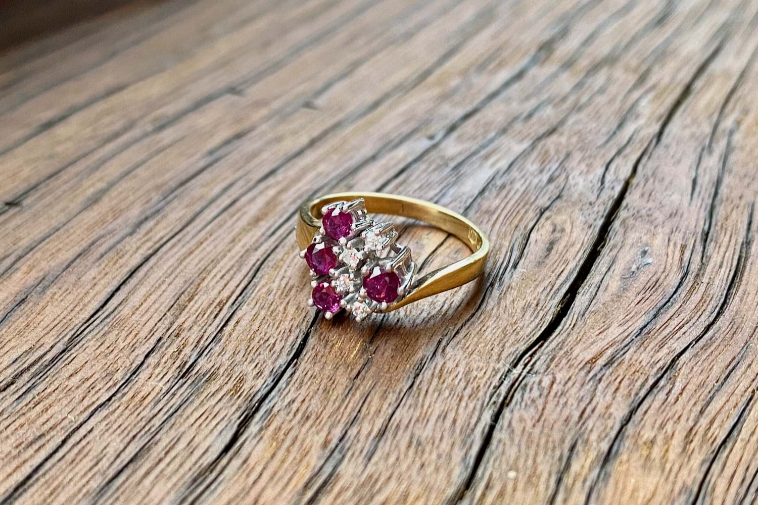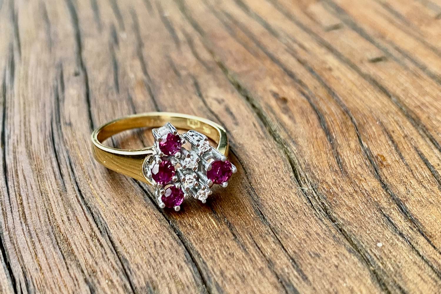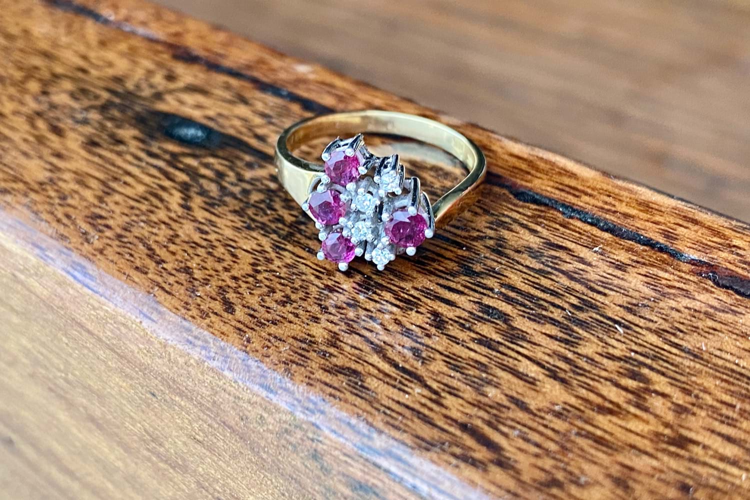 SOLD Vintage 18ct Yellow Gold 0.66ct Ruby & 0.06ct Diamond Cluster Ring