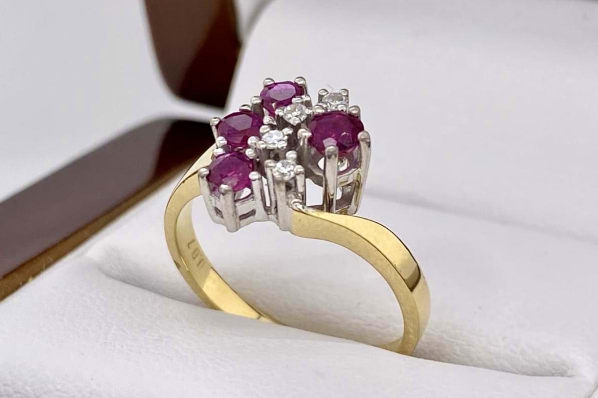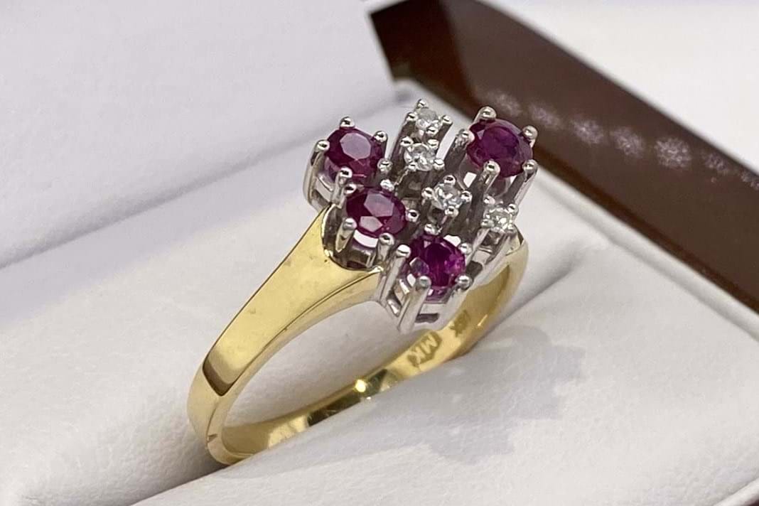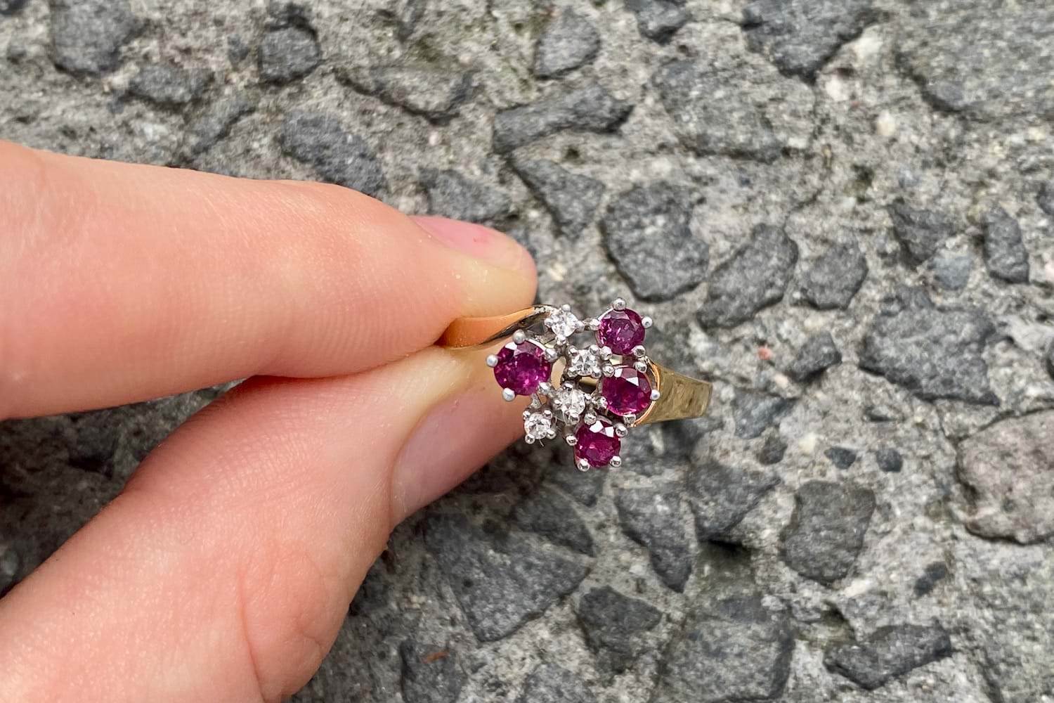 SOLD Vintage 18ct Yellow Gold 0.66ct Ruby & 0.06ct Diamond Cluster Ring
