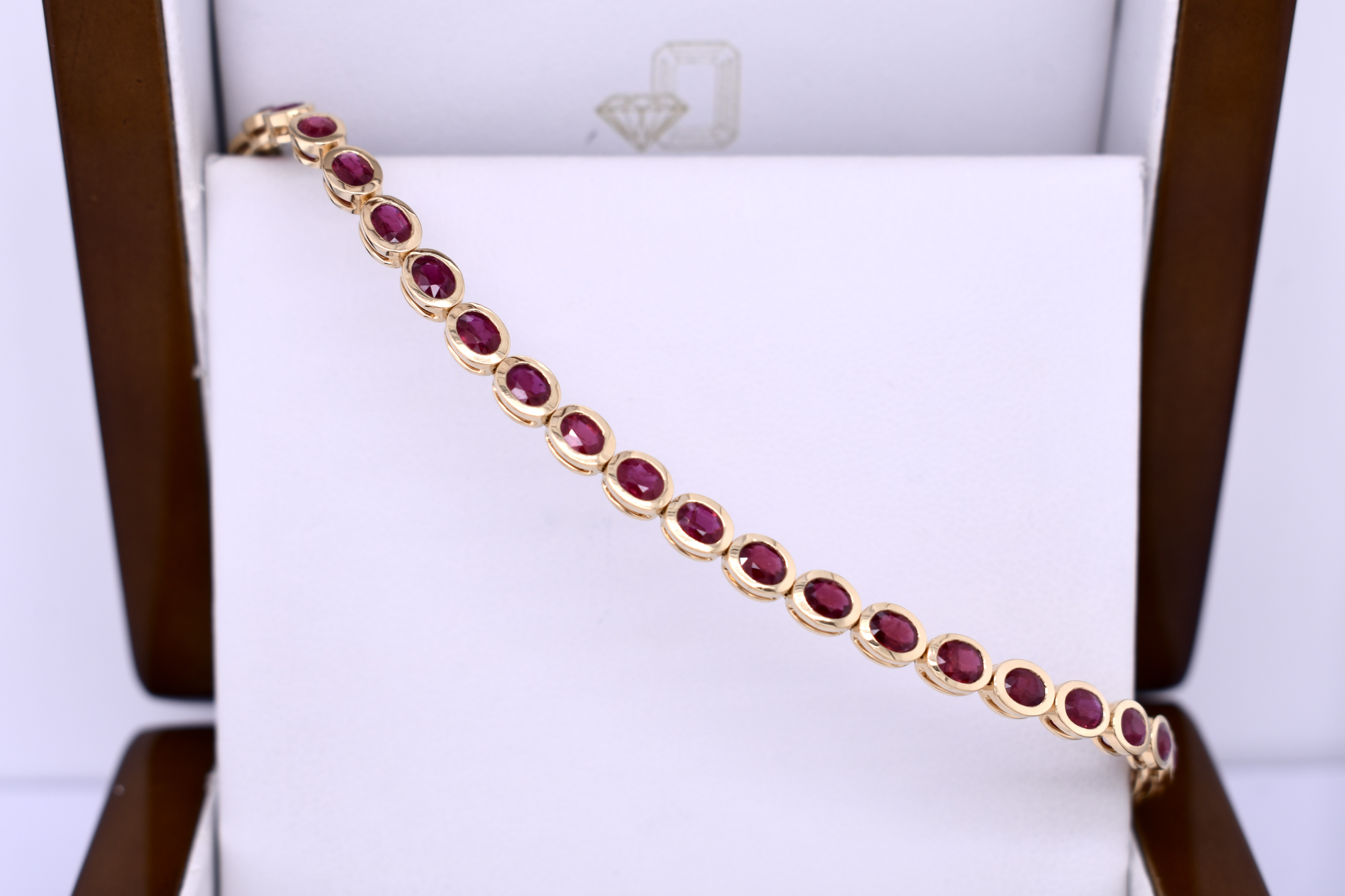 18ct Yellow Gold 5.79ct Mozambique Oval Ruby Bezel Set 19cm Bracelet