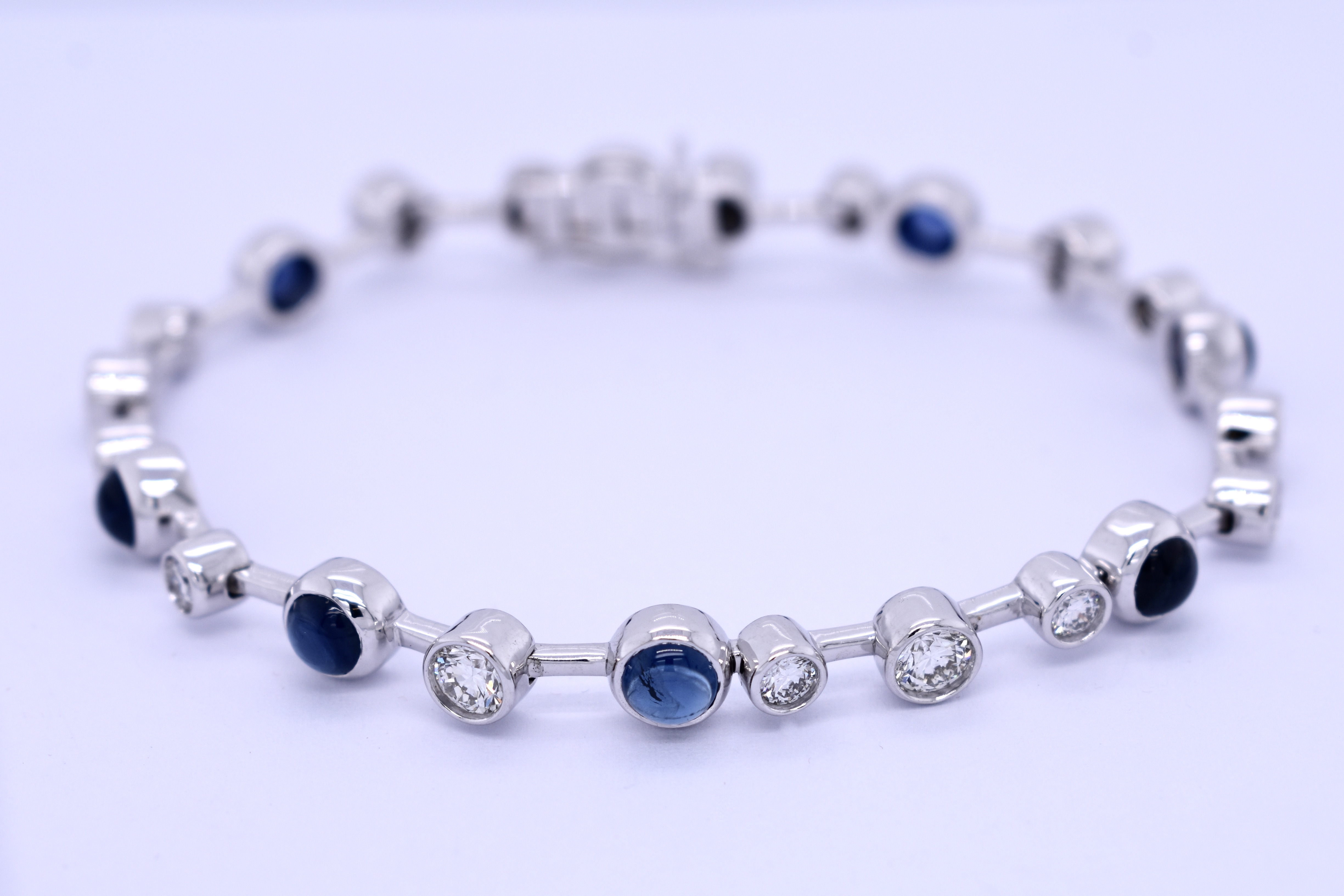 9ct White Gold 6.74ct Cabochon Blue Sapphire & 2.50ct Diamond 19.5cm Bubble Bracelet