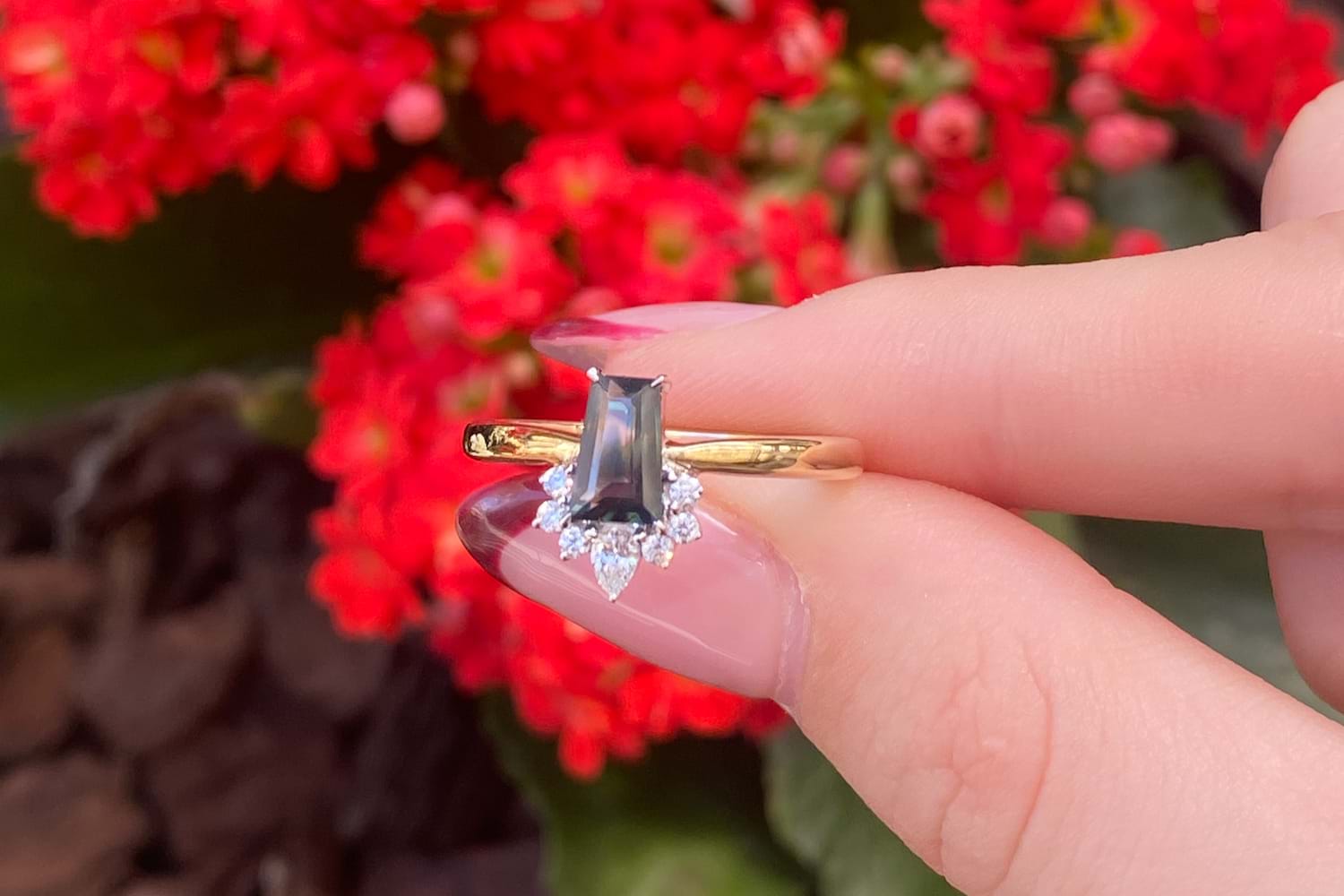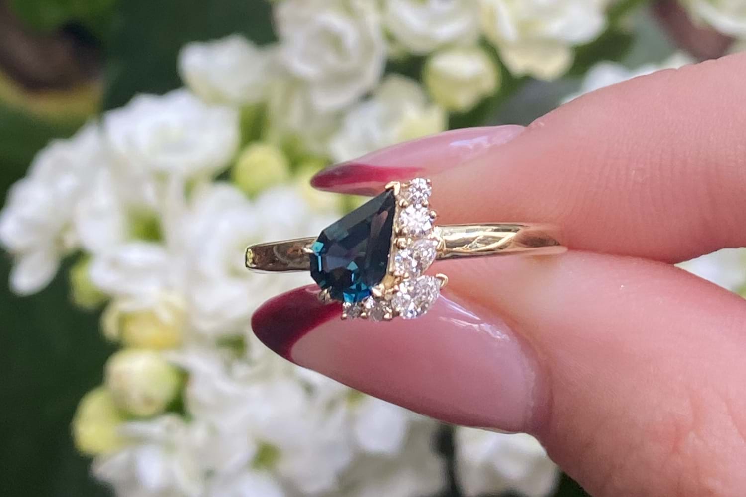 18ct Yellow Gold 2.07ct Madagascan Teal Sapphire & 0.23ct Diamond Ring (M)