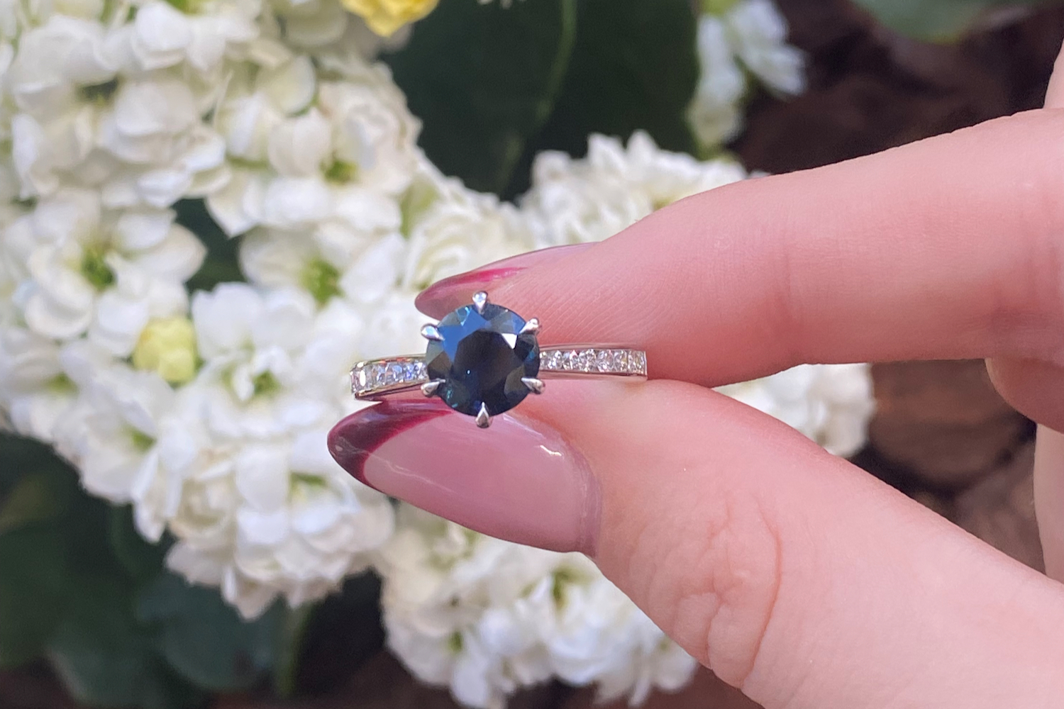 18ct White Gold 1.99ct Teal Madagascan Sapphire & 0.44ct Diamond Ring (L)