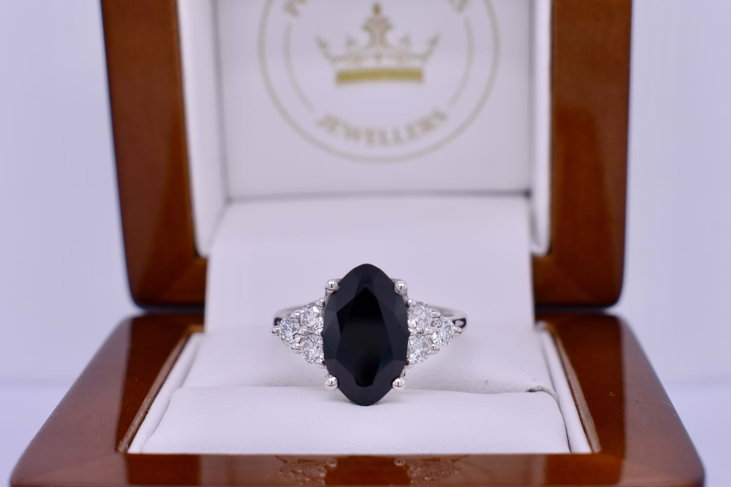 9ct White Gold Cabochon Sapphire & Diamond Dress Ring (M+)