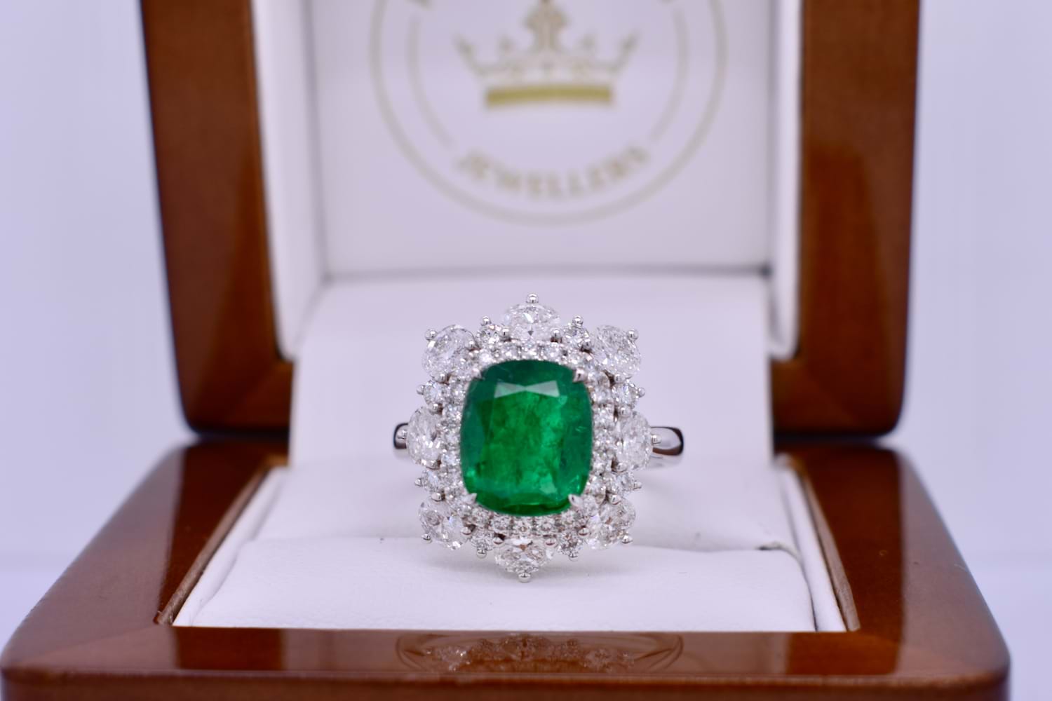 18ct White and Yellow Gold 1.19ct Emerald and 0.66ct Diamond 5 Stone Ring (M)