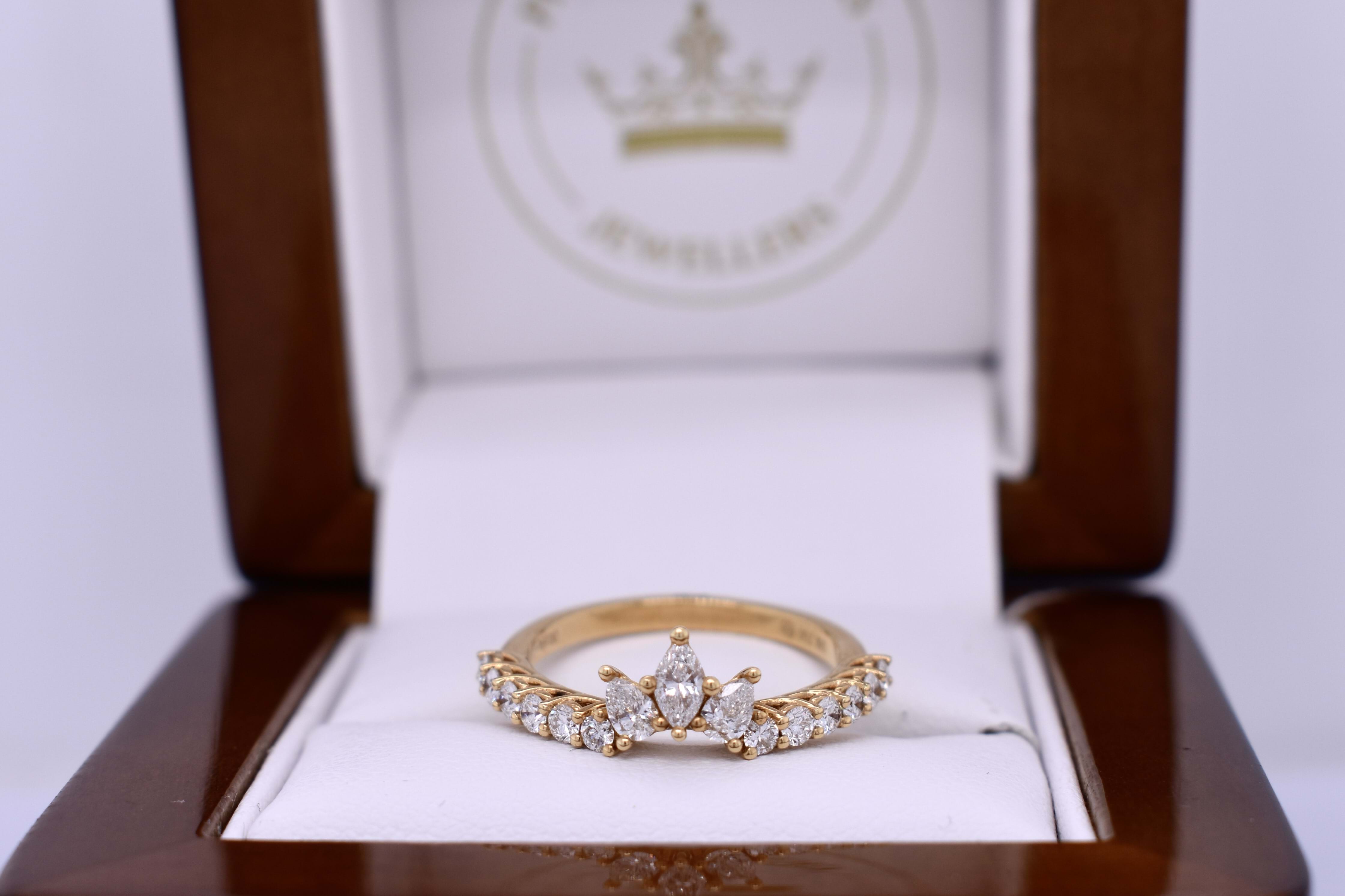 18ct Yellow Gold 0.69ct FGVS-SI Diamond Crown Design Curved Band (L+)