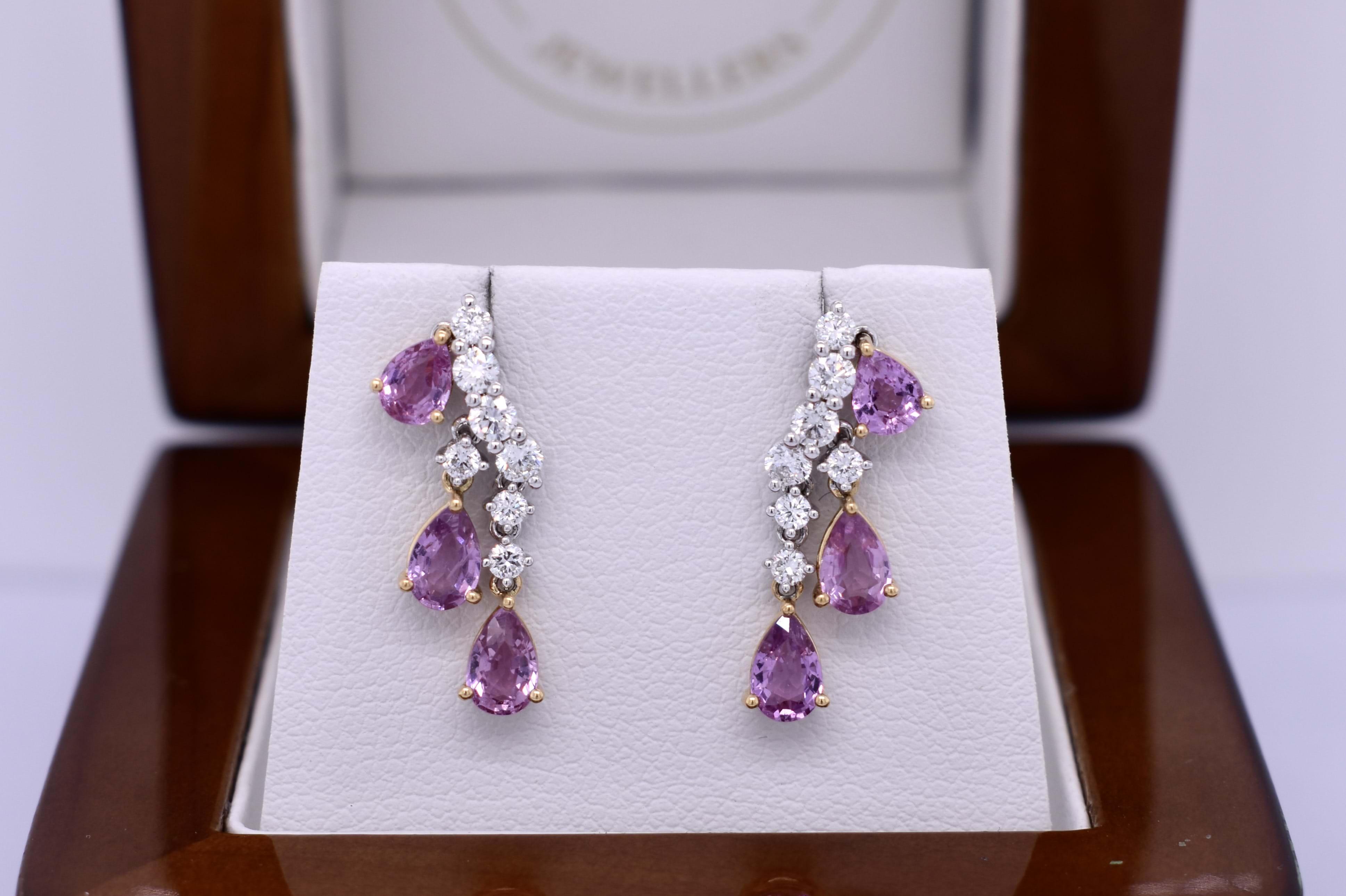 18ct White Gold 1.86ct Pink Sapphire & 0.47ct Diamond Stud Drops