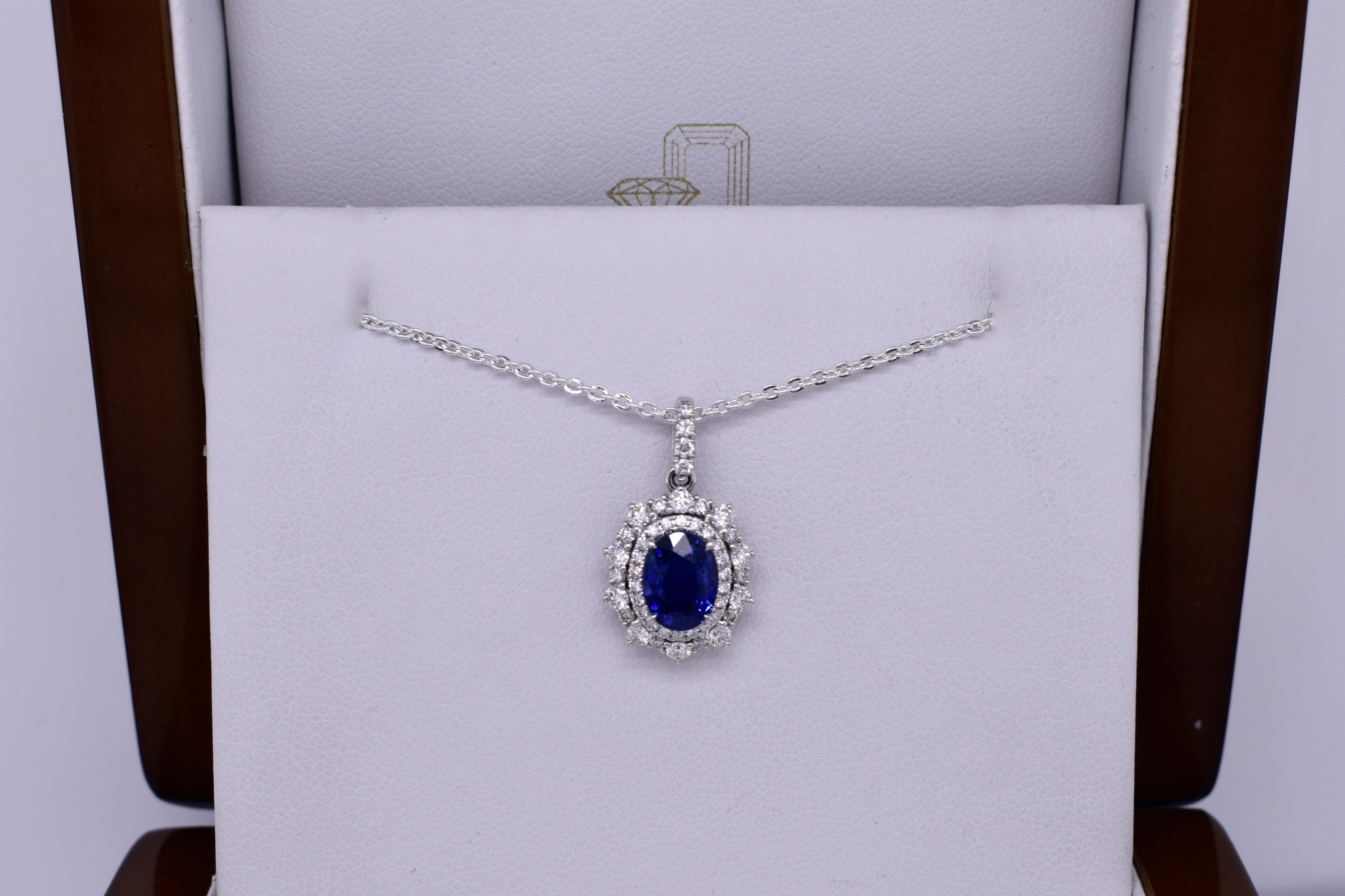 18ct White Gold 1.68ct Blue Sapphire & 0.60ct Diamond Pendant