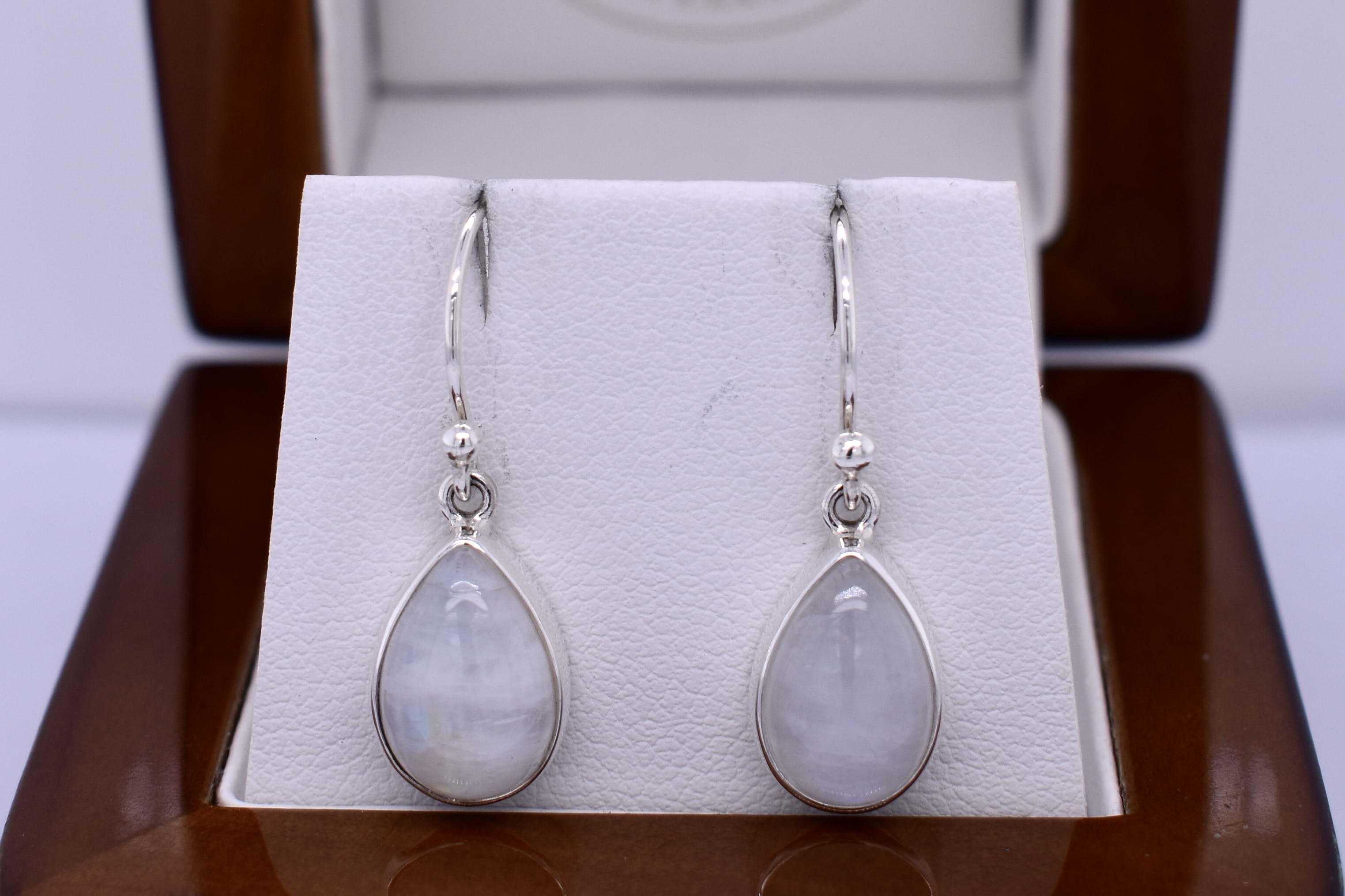 Handmade Sterling Silver Pear Shaped Moonstone Drops