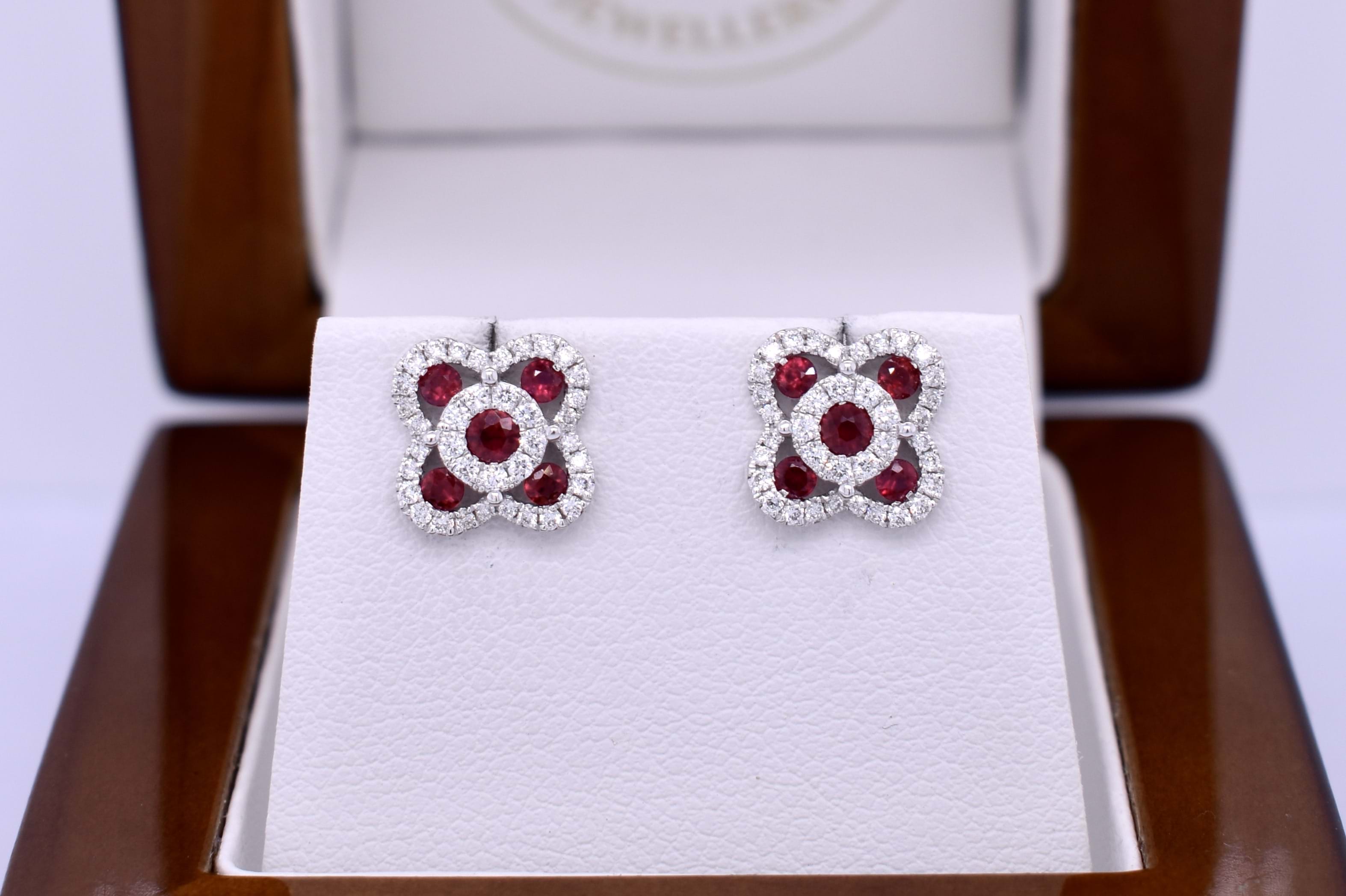 18ct White Gold 0.42ct Ruby & 0.42ct Diamond Four Point Cluster Studs