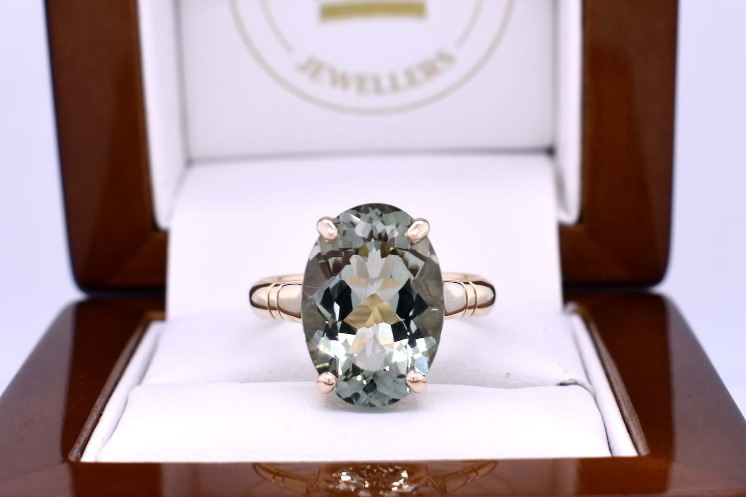 Handmade 9ct Yellow Gold Oval 7.70ct Prasiolite Ring (R )