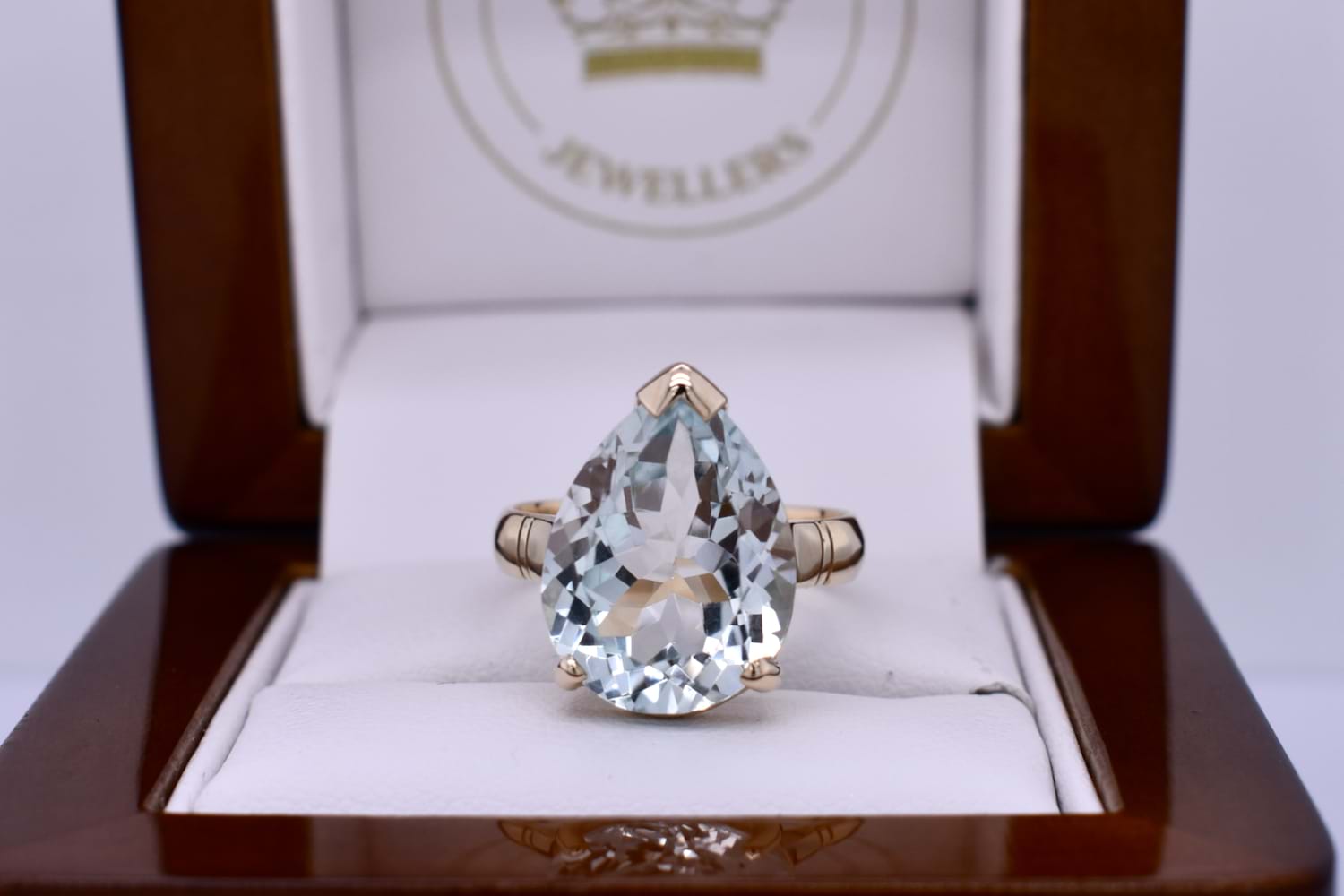 Handmade 9ct Yellow Gold Pear Shaped 10.50ct White Topaz Ring (N)