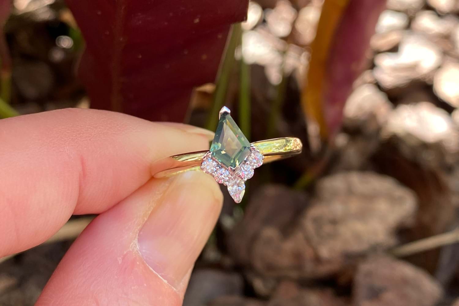 18ct Yellow Gold Hexagonal Shaped 0.97ct Australian Sapphire and Diamond Ring (M)