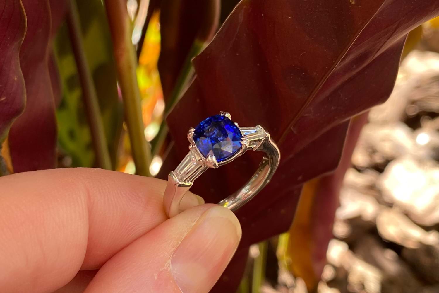 18ct White Gold 2.15ct Ceylon Blue Radiant Sapphire & 2.25ct GIA Diamond Ring (L+)