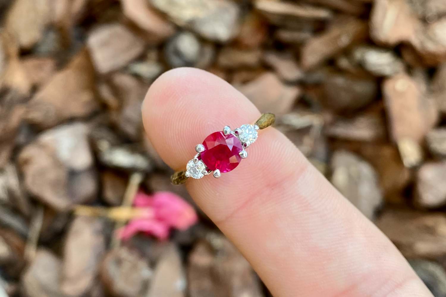 18ct Yellow Gold 1.31ct Mozambique Ruby & 0.21ct Diamond Trilogy Ring (L)