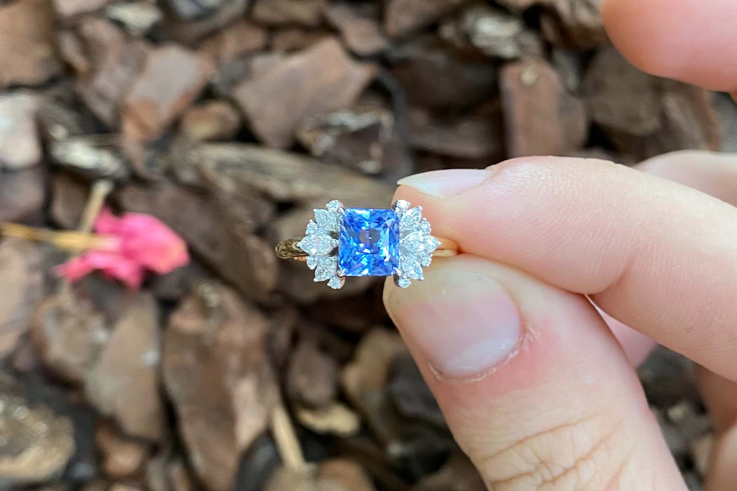 18ct Yellow Gold 1.98ct Ceylon Blue Radiant Sapphire & 0.34ct GH SI Diamond Ring (M)