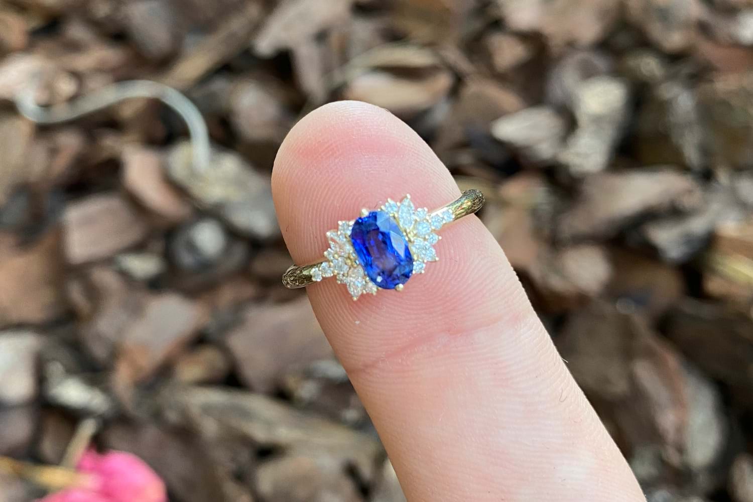 18ct Yellow Gold 1.05ct Oval Purple Madagascan Sapphire & 0.30ct Diamond Ring (M+)