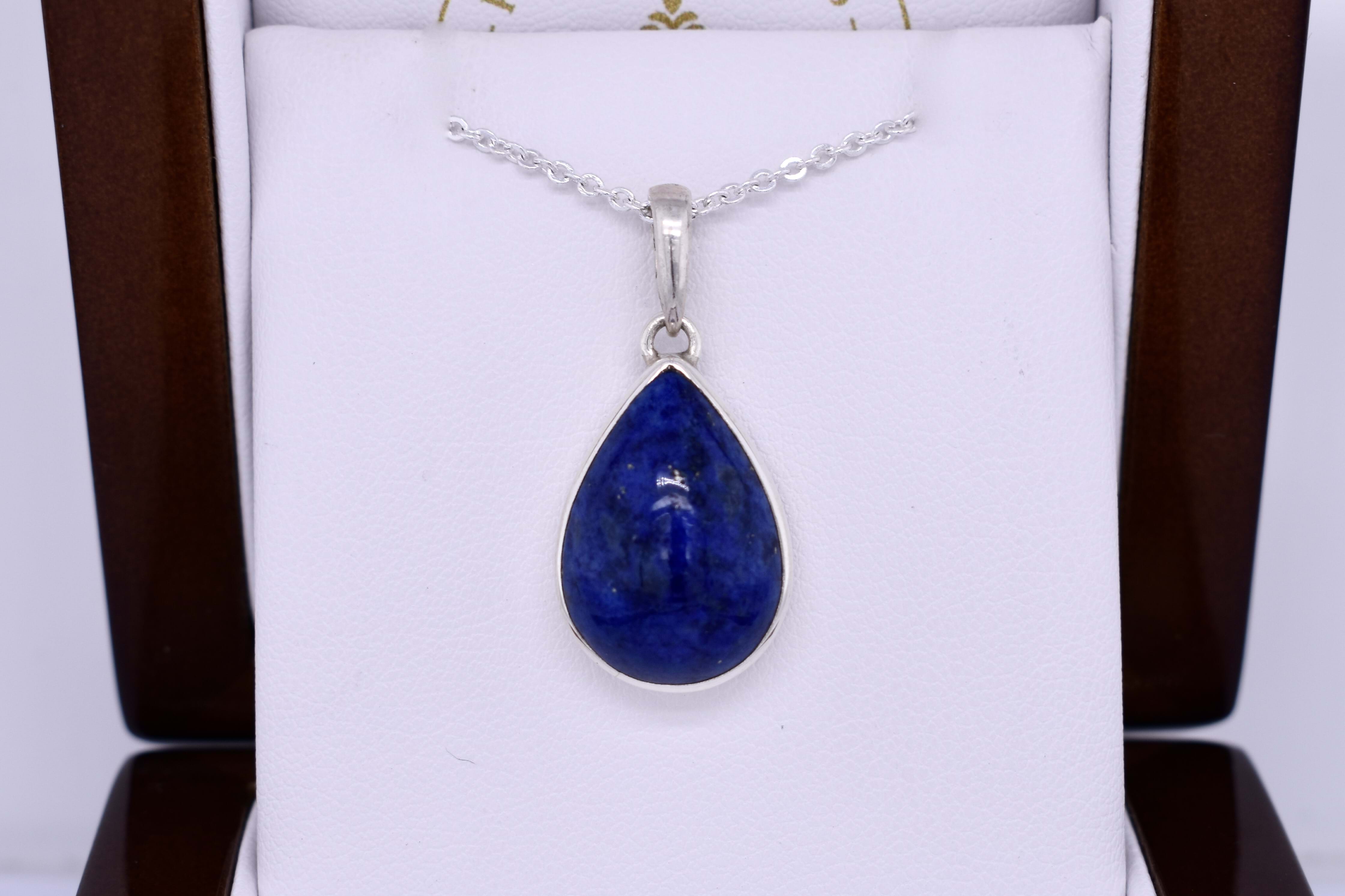 Handmade Sterling Silver Lapis Pear Shaped Pendant