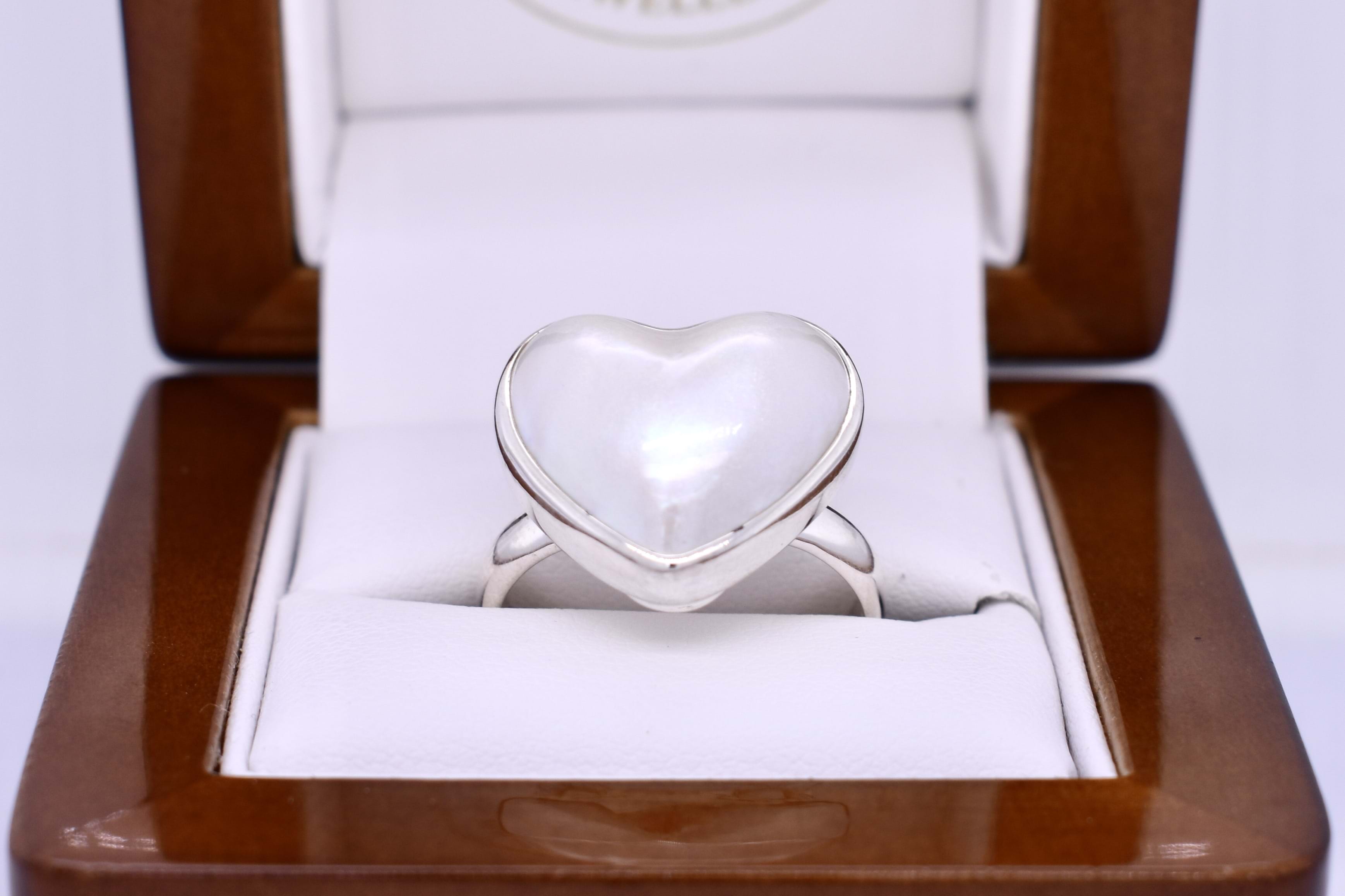Handmade Sterling Silver Heart Shaped Mabe Pearl Ring (R+)