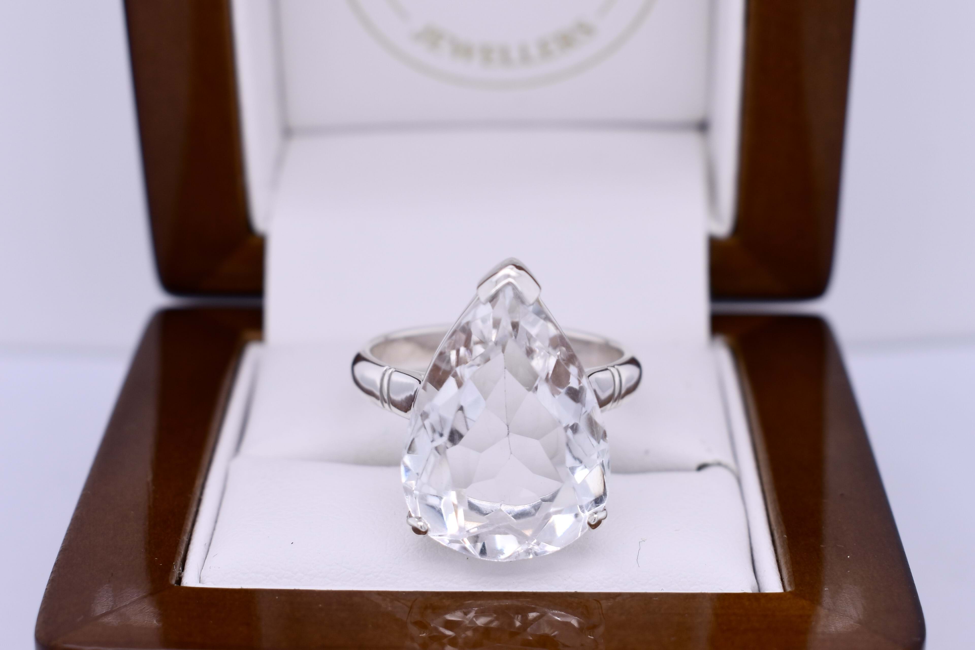 Handmade Sterling Silver Pear Shaped White Topaz Ring (T)