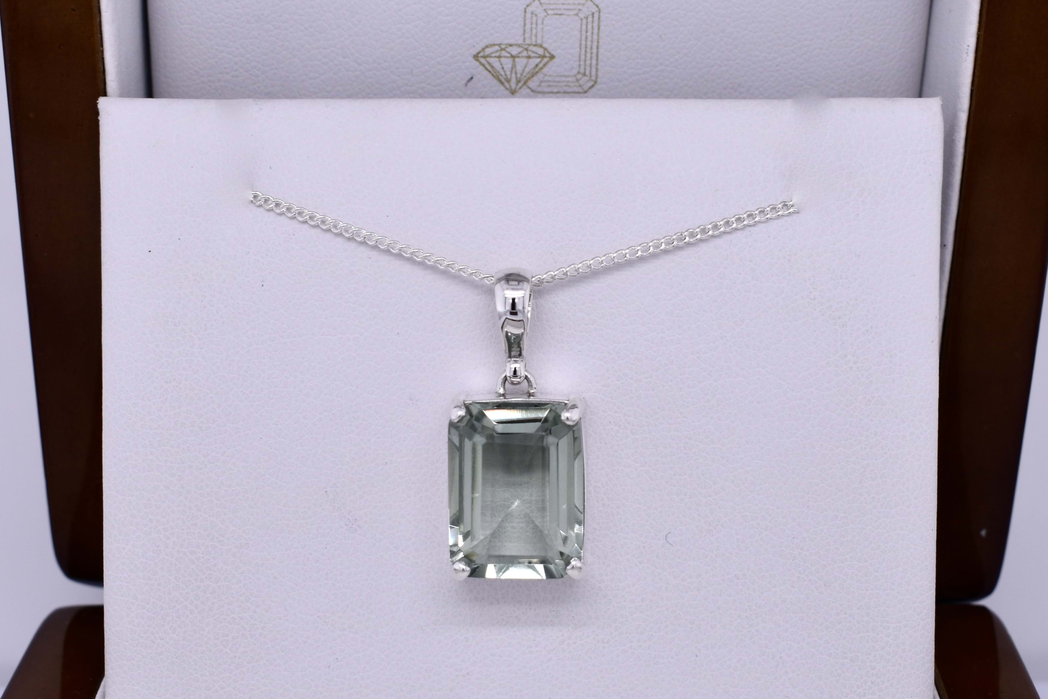 Handmade Sterling Silver Emerald Cut Prasiolite Pendant