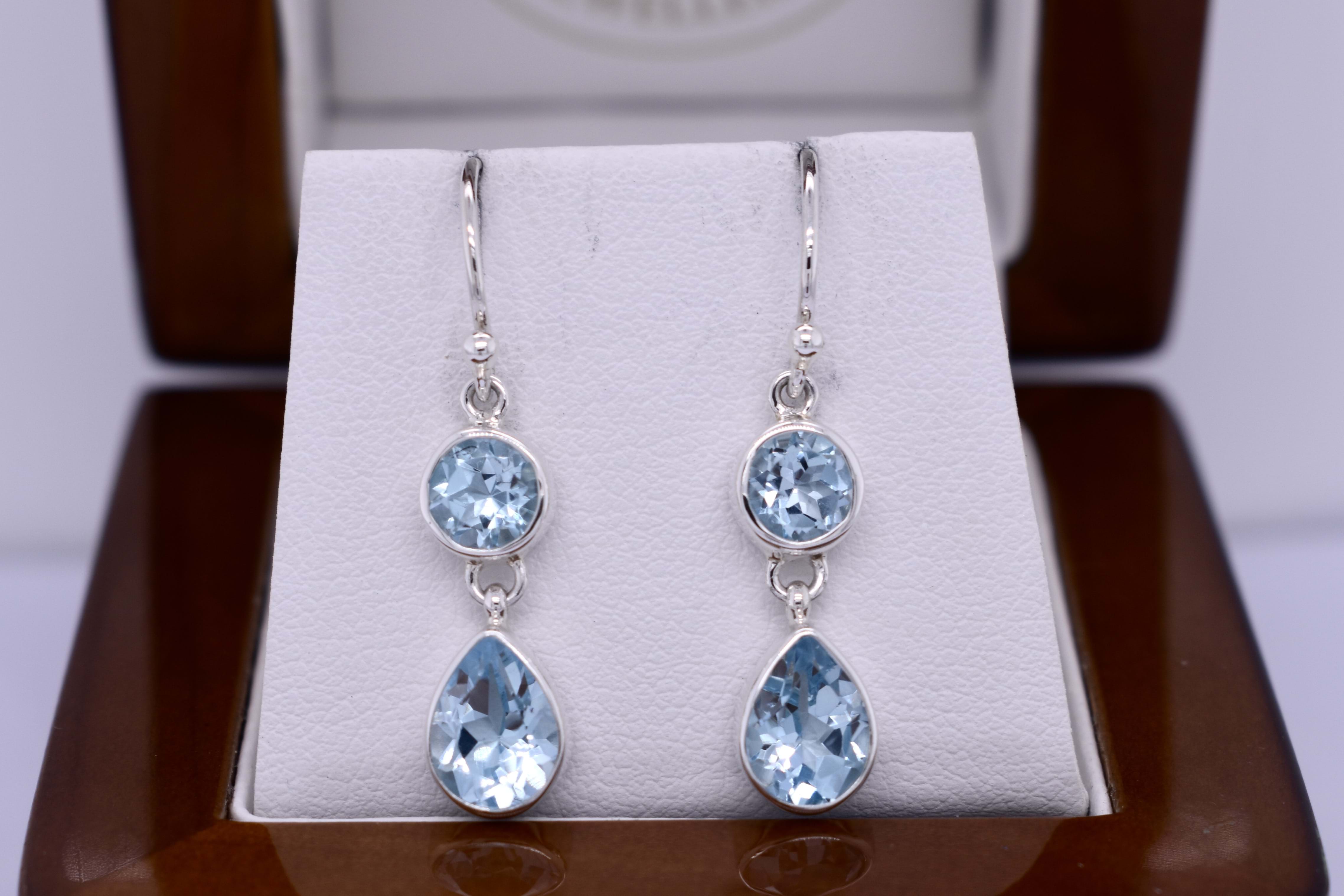 Handmade Sterling Silver Sky Blue Topaz Round/Pear Double Drops