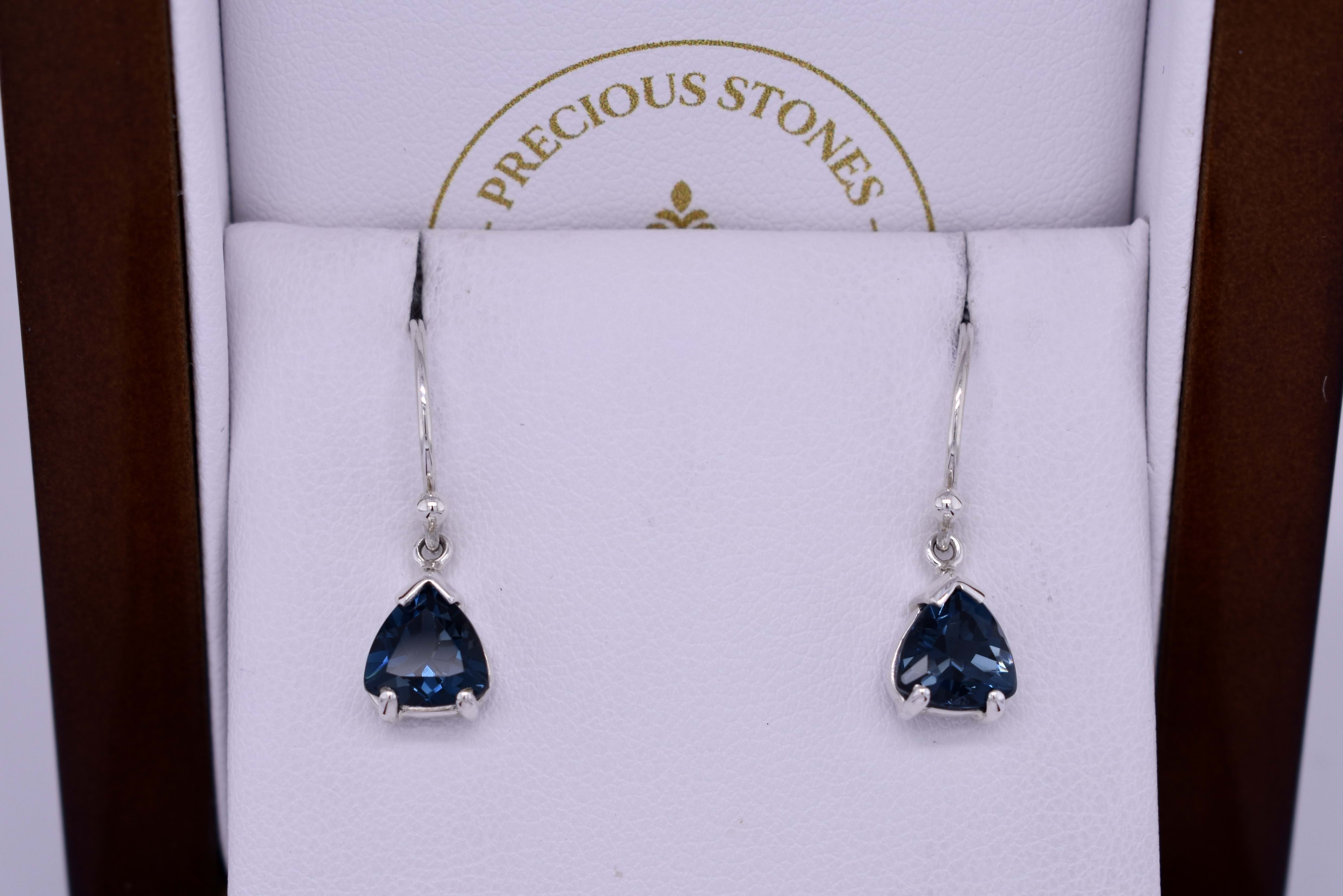 Handmade Sterling Silver London Blue Topaz Trilliant Shaped Drops
