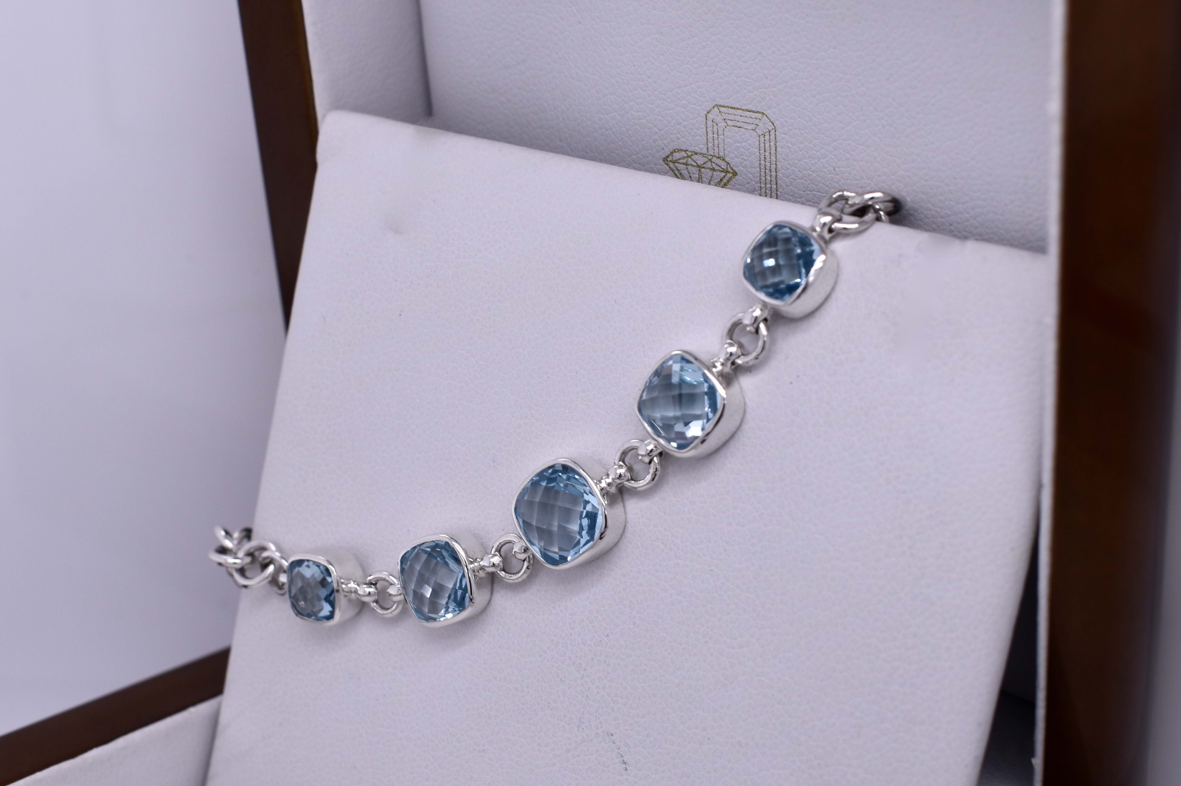 Sterling Silver Sky Blue Topaz 5 Stone Cushion Cut 18-22cm Bracelet