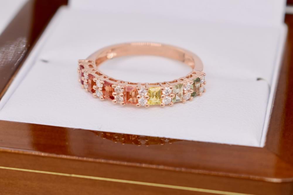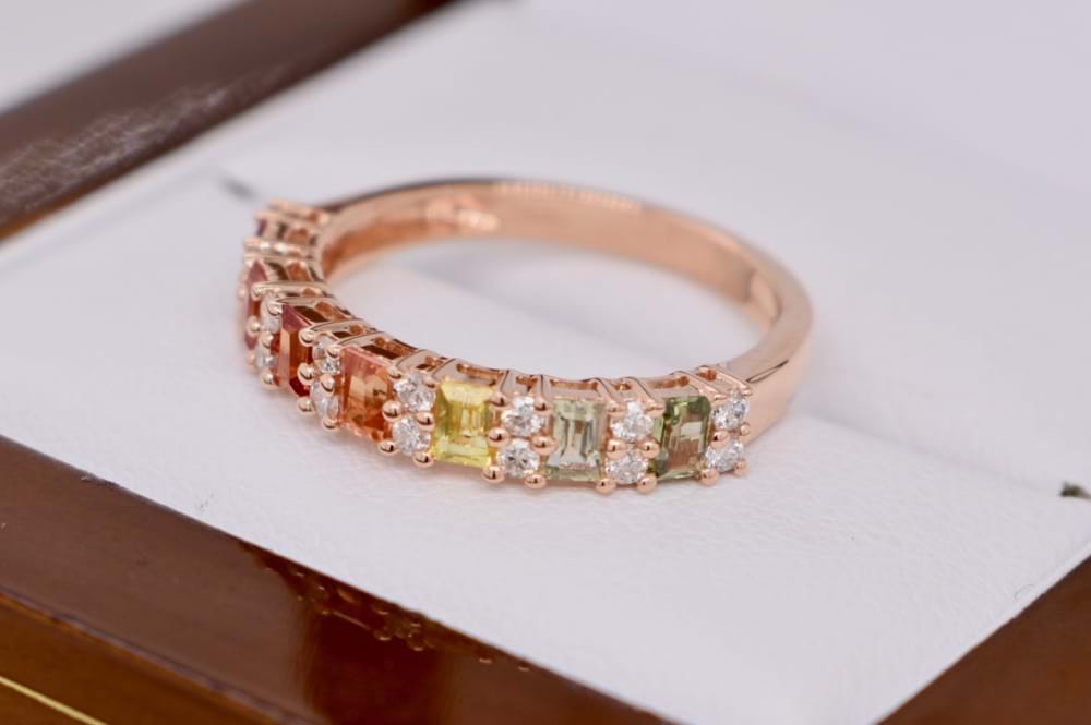 18ct Rose Gold 0.84ct Multi-Coloured Sapphire & 0.25ct Diamond Ring