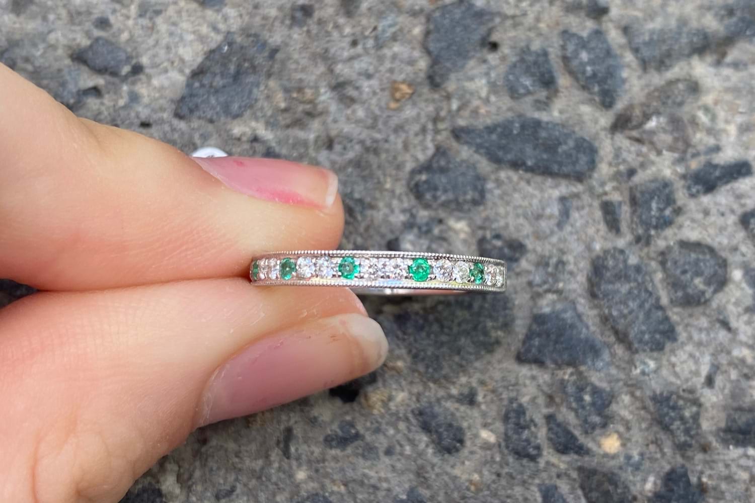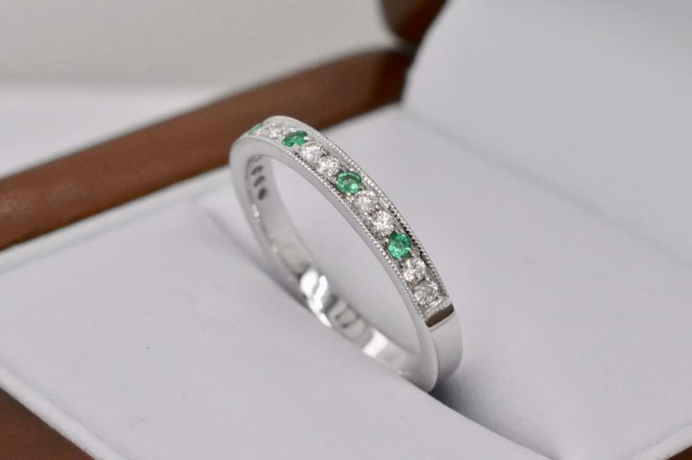 18ct White Gold Emerald & Diamond Vintage Style Band