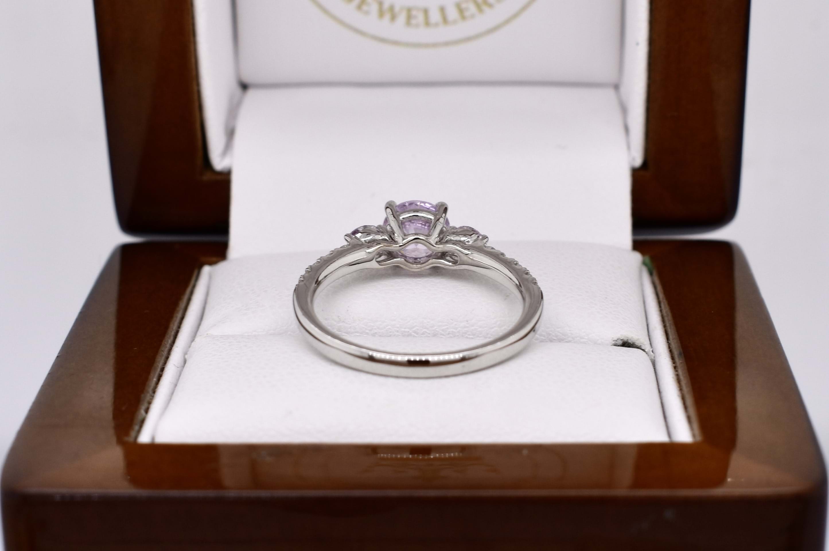 18ct White Gold 1.08ct Pale Pink Sapphire & 0.16ct Purple/Pink & 0.23ct Diamond Ring (M+)