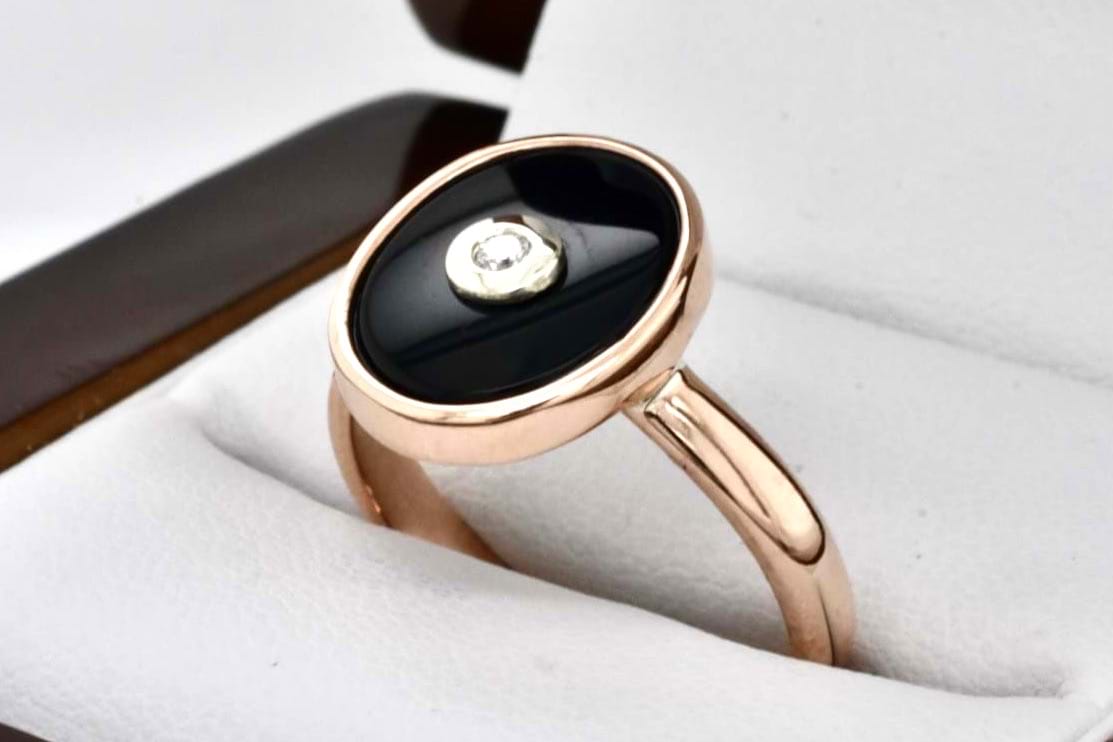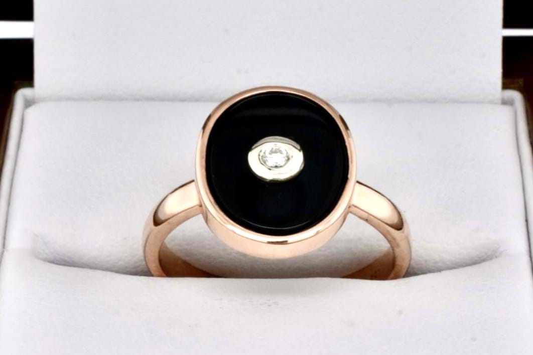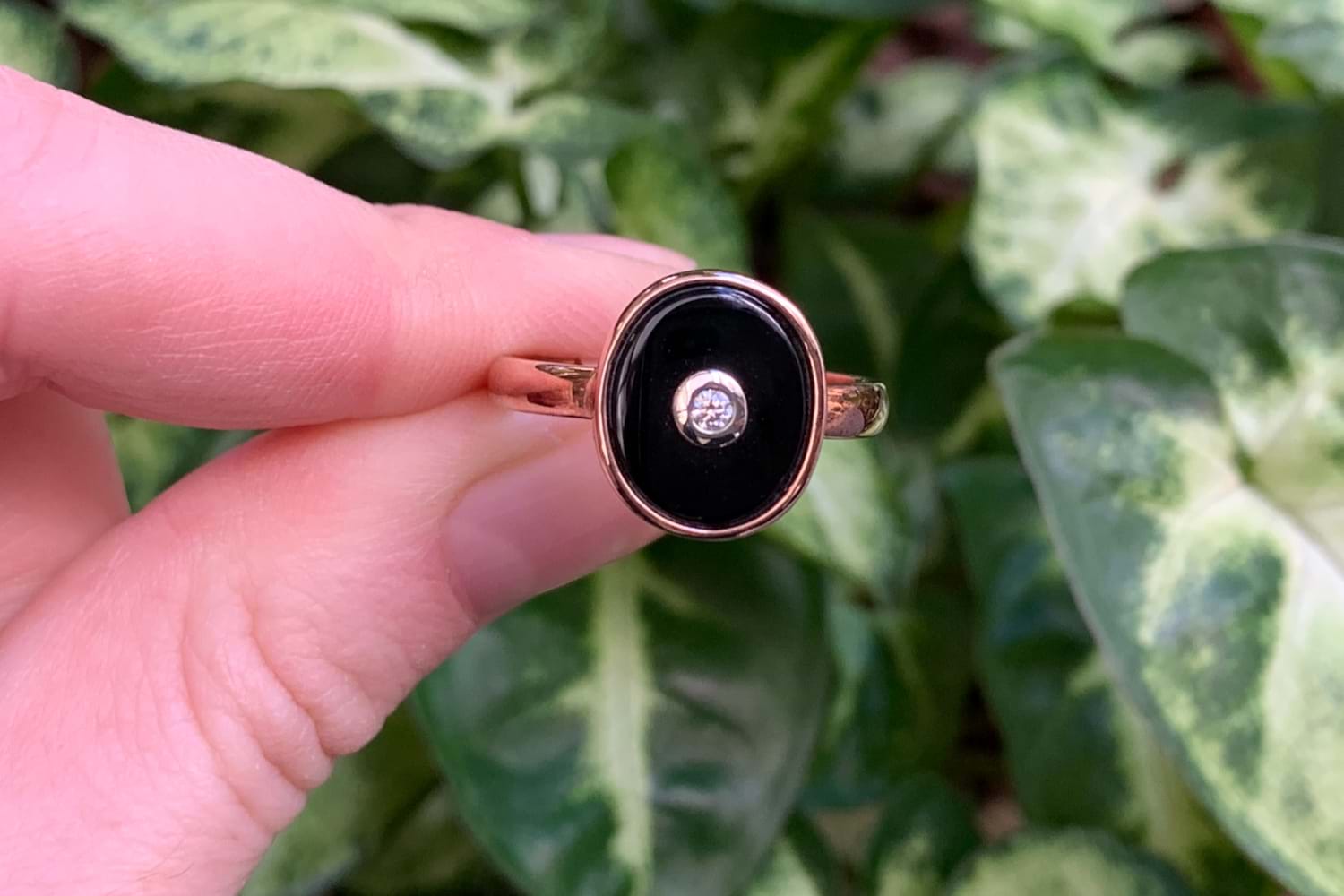 SOLD 9ct Rose Gold Oval Onyx & Diamond Ring (N)