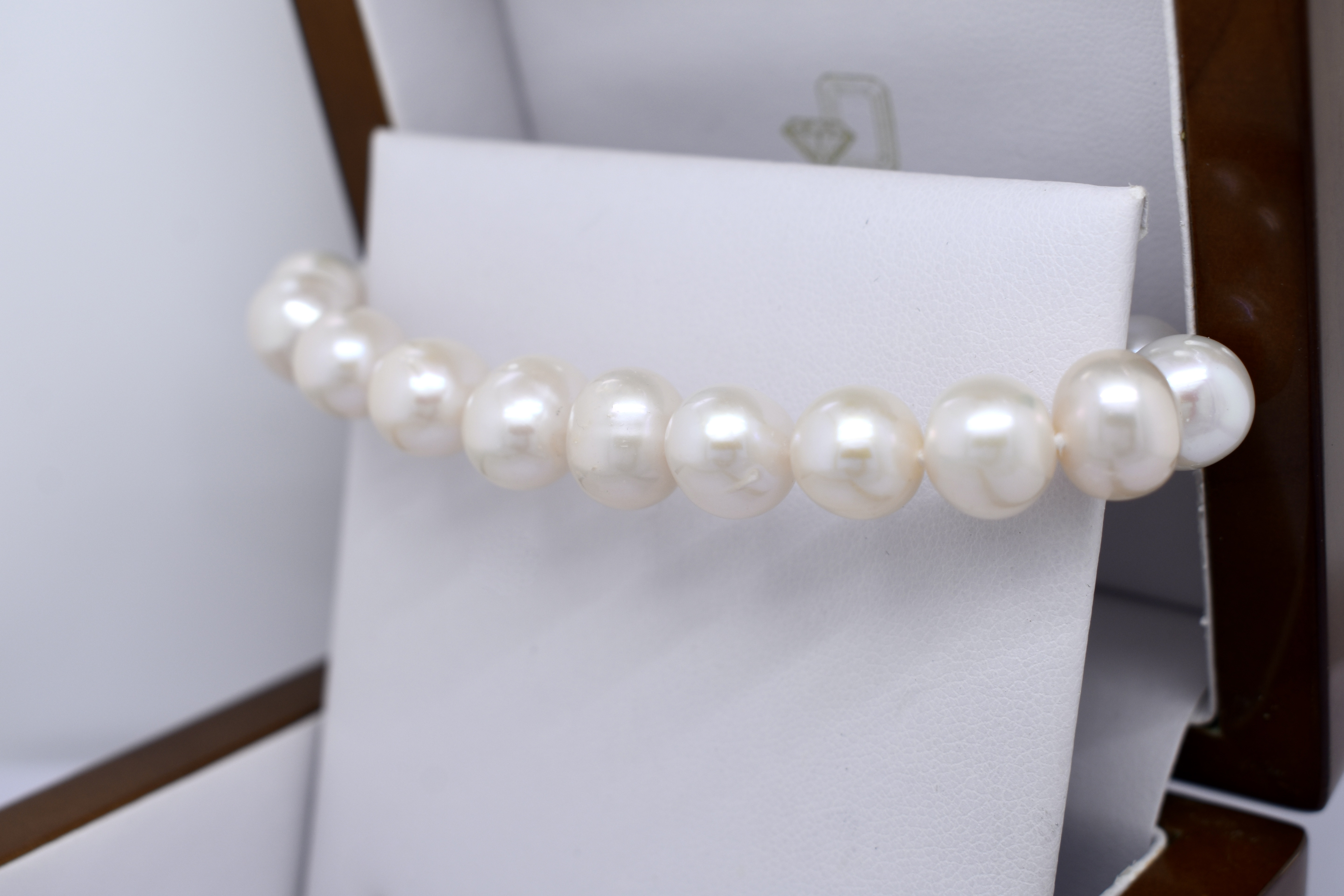 The cutest white freshwater pearl bracelet. Featuring 9-10mm semi round pearls. This classic bracelet measures 20cm long and is finished with a sterling silver ball clasp. Looks amazing alone or in a bracelet stack. Complete the set with the matching strand: 20374839.