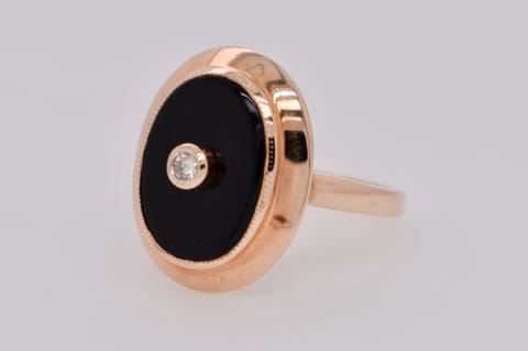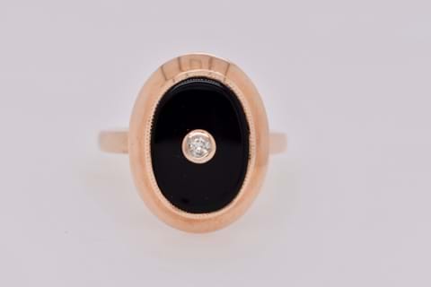 9ct rose gold oval Onyx and diamond ring. Finger Size R