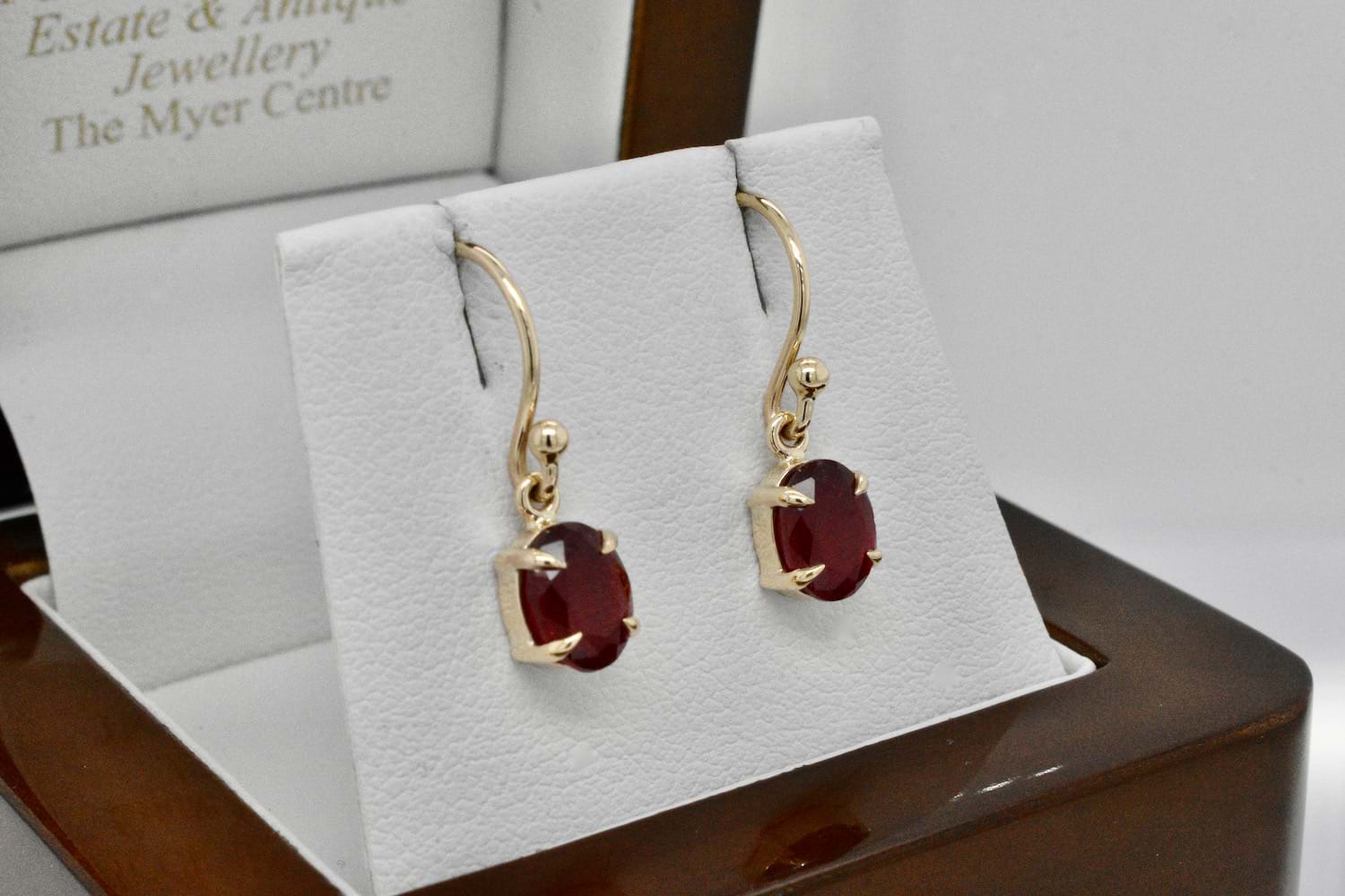 SOLD Handmade 9ct Yellow Gold 7x6mm Ruby Drop Earrings