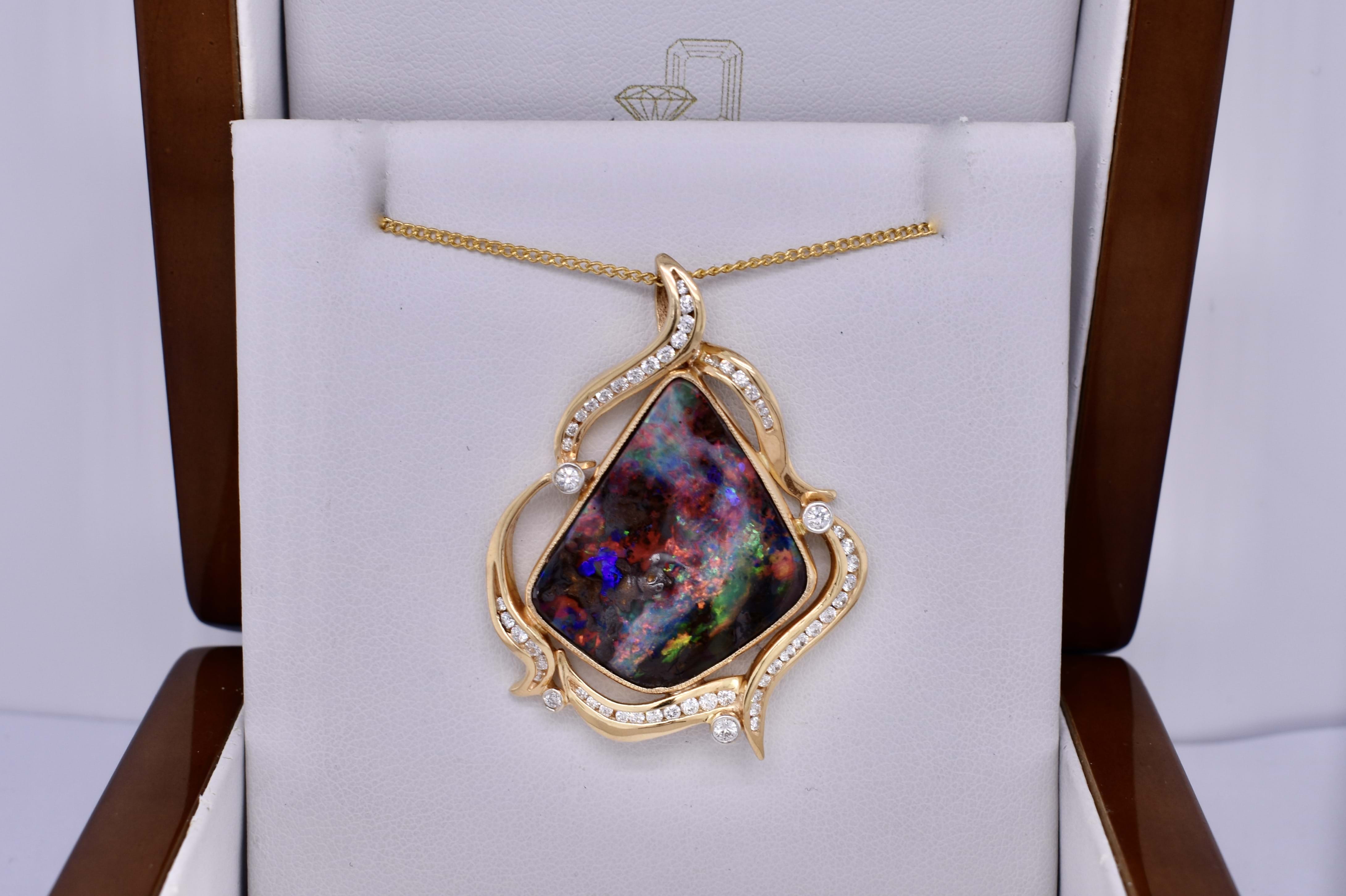 18ct Yellow Gold 24.95ct Boulder Opal & 0.87ct Diamond Pendant