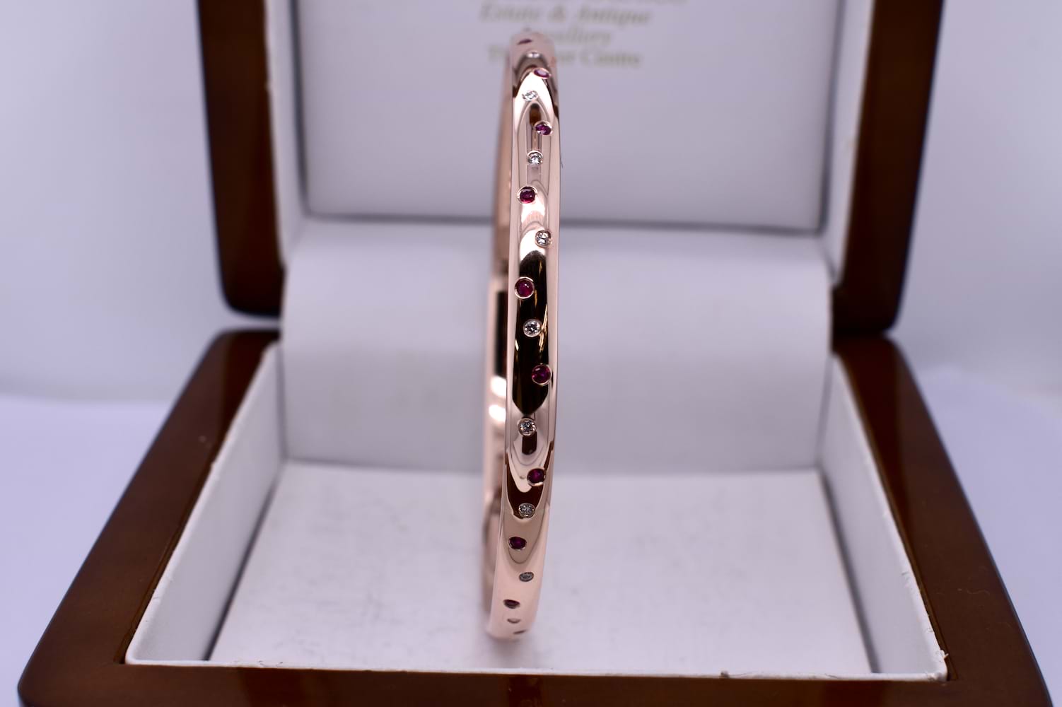 Handmade 9ct Rose Gold Ruby & Diamond Scatter Set 67mm Bangle