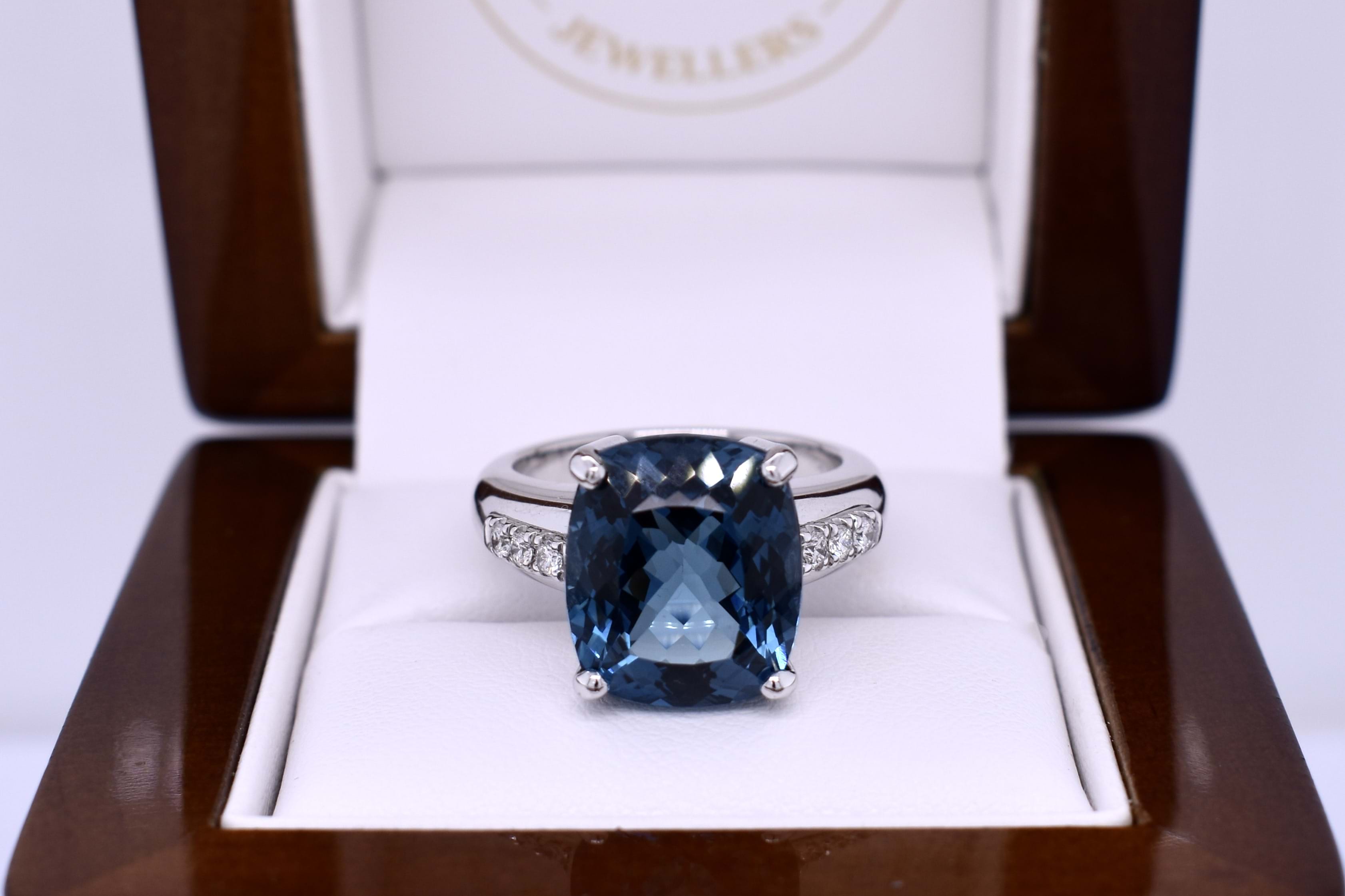 9ct White Gold 9.76ct London Blue Topaz & 0.14ct Diamond Ring (N+)
