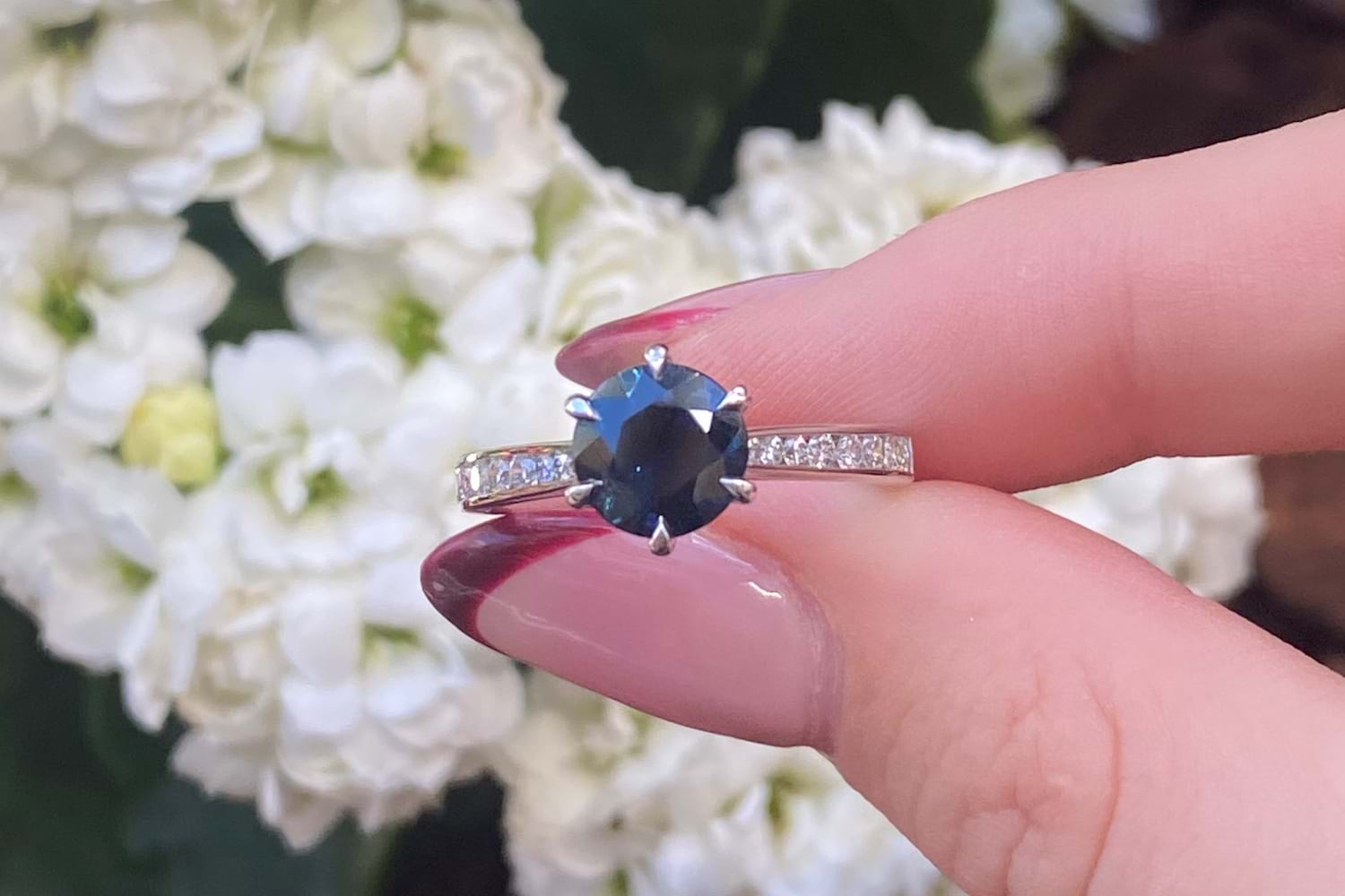 18ct White Gold 1.74ct Blue Aus Round Sapphire & 0.33ct Diamond Ring (N)