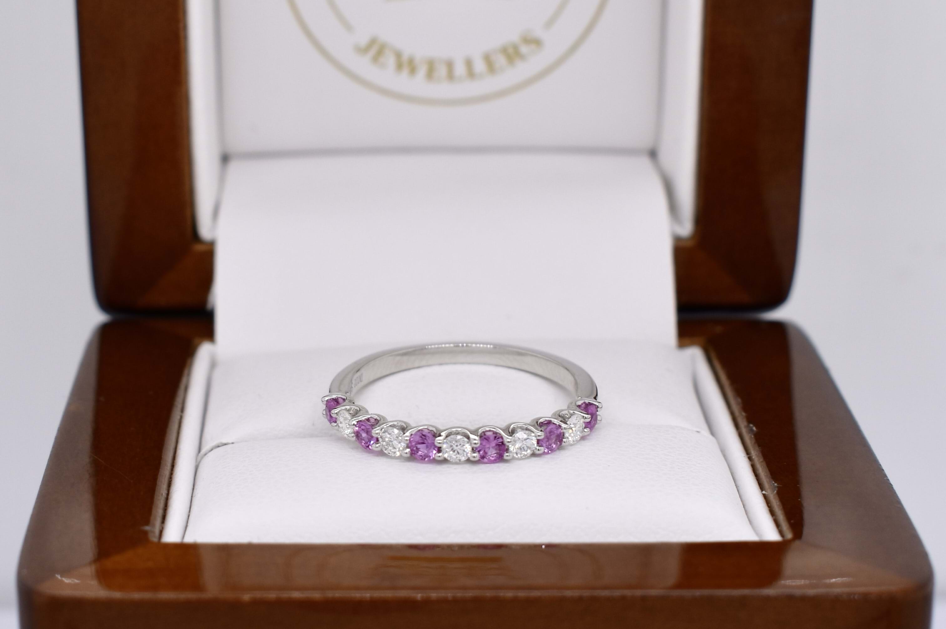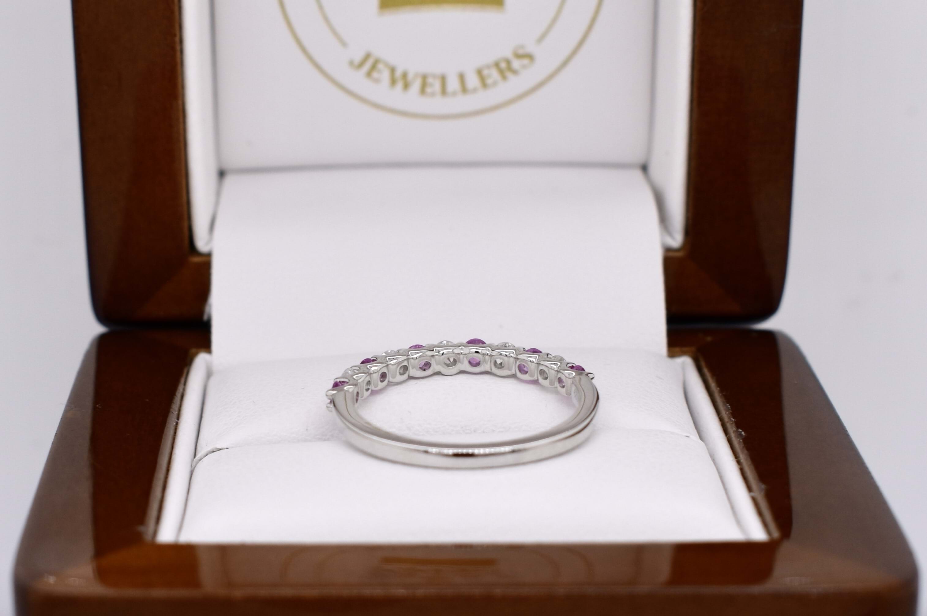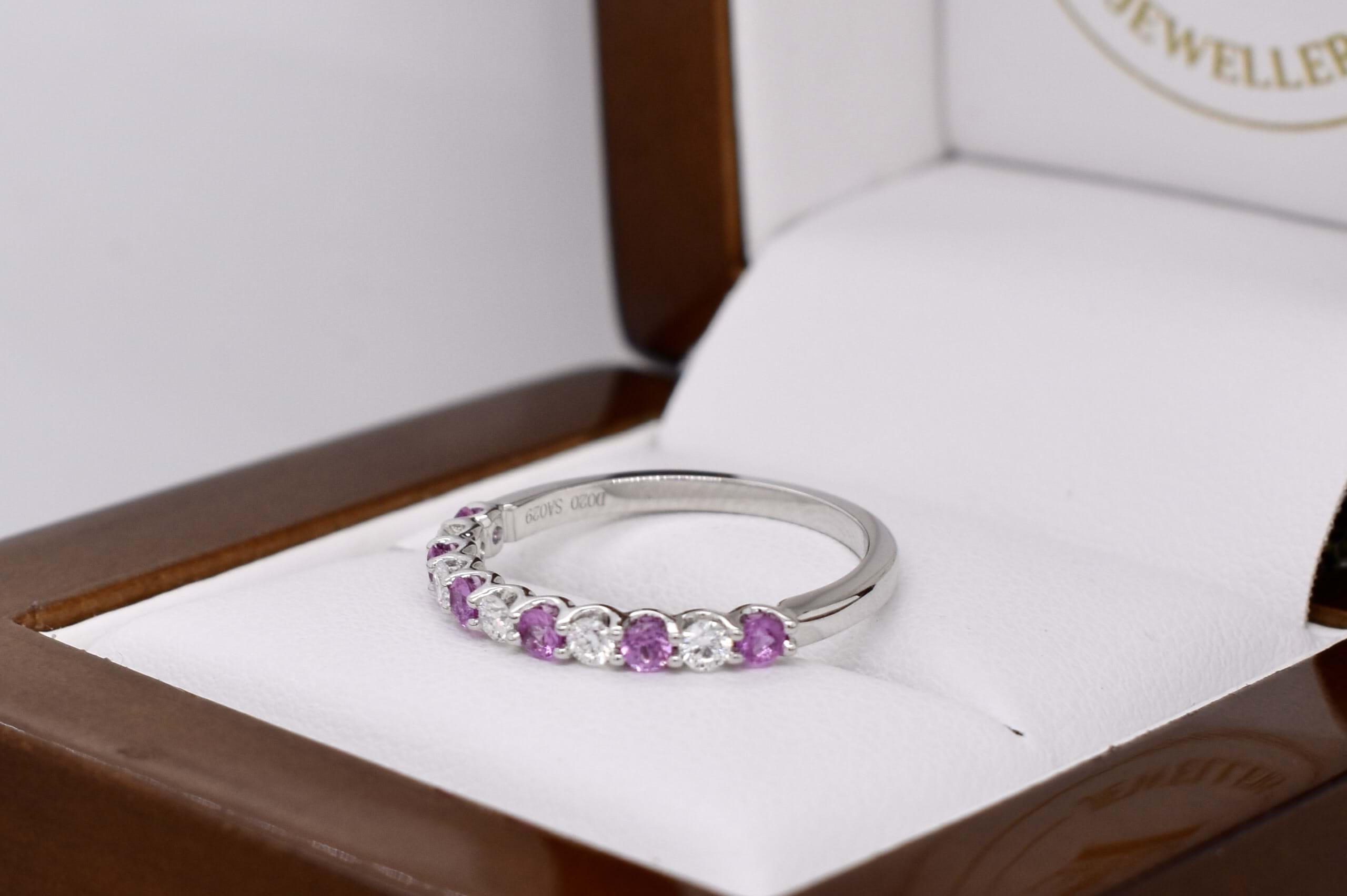 18ct White Gold 0.29ct Light Pink Sapphire & 0.20ct Diamond Band (M+)